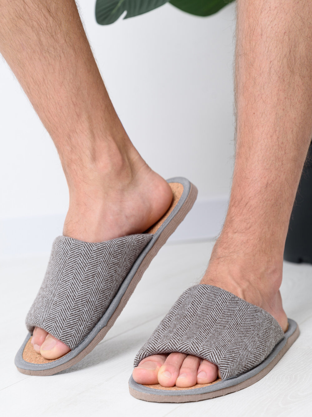 Купить Мужские домашние тапки "LepiloV", открытые, на пробковой стельке. Размер 41. Серая ёлка.