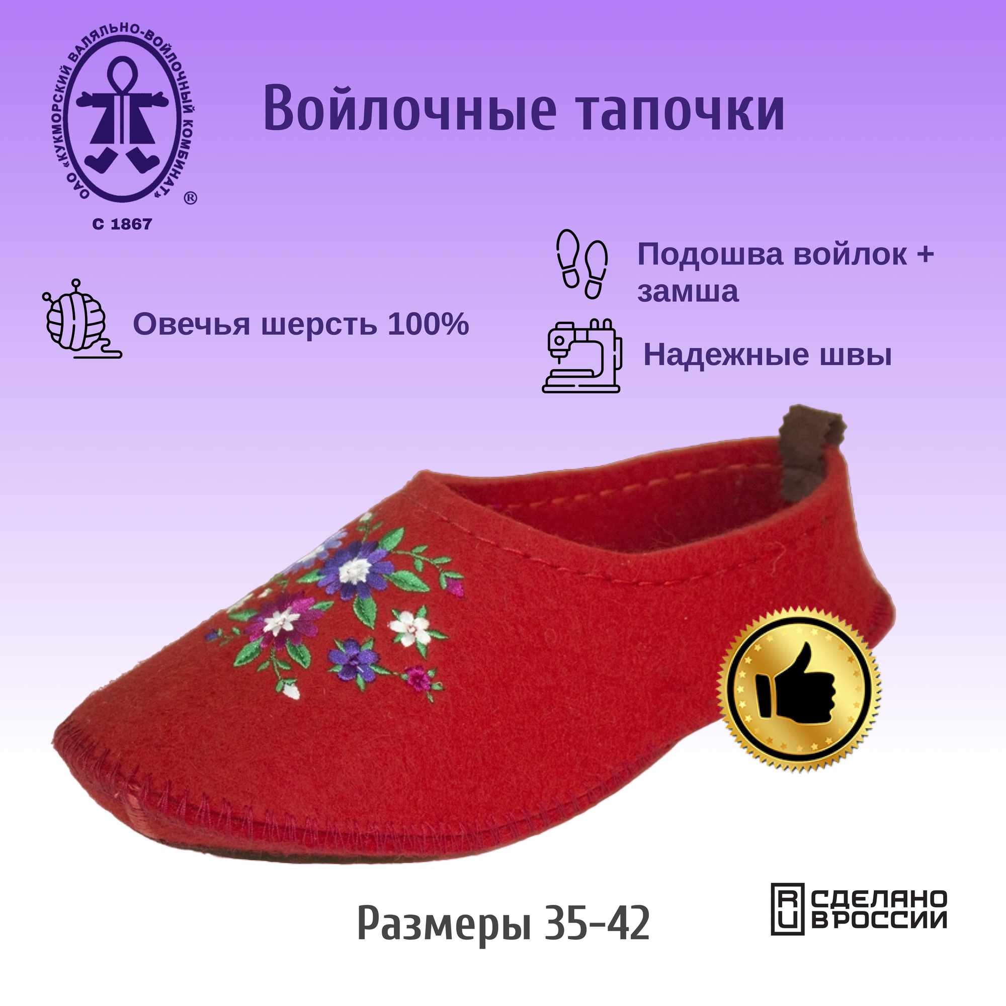 Чешки (следки) женские Кукморские войлочные Т-34цв "Триумф" красные на войлочной подошве р.35