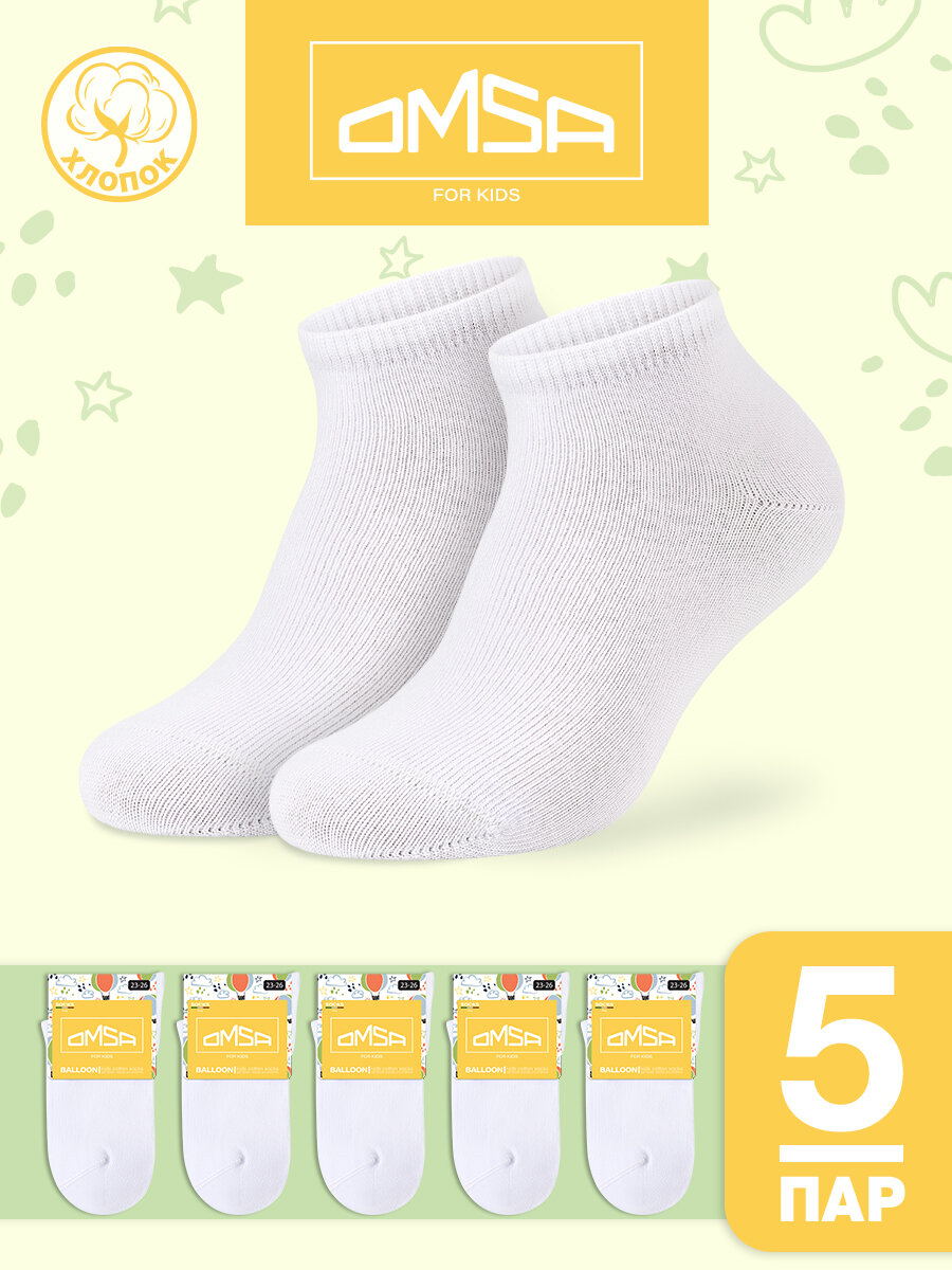 Носки детские OMSA kids Calzino 21C02, для мальчика, для девочки, короткие, цветные, хлопок , набор 5 пар, цвет Bianco, размер 23/26