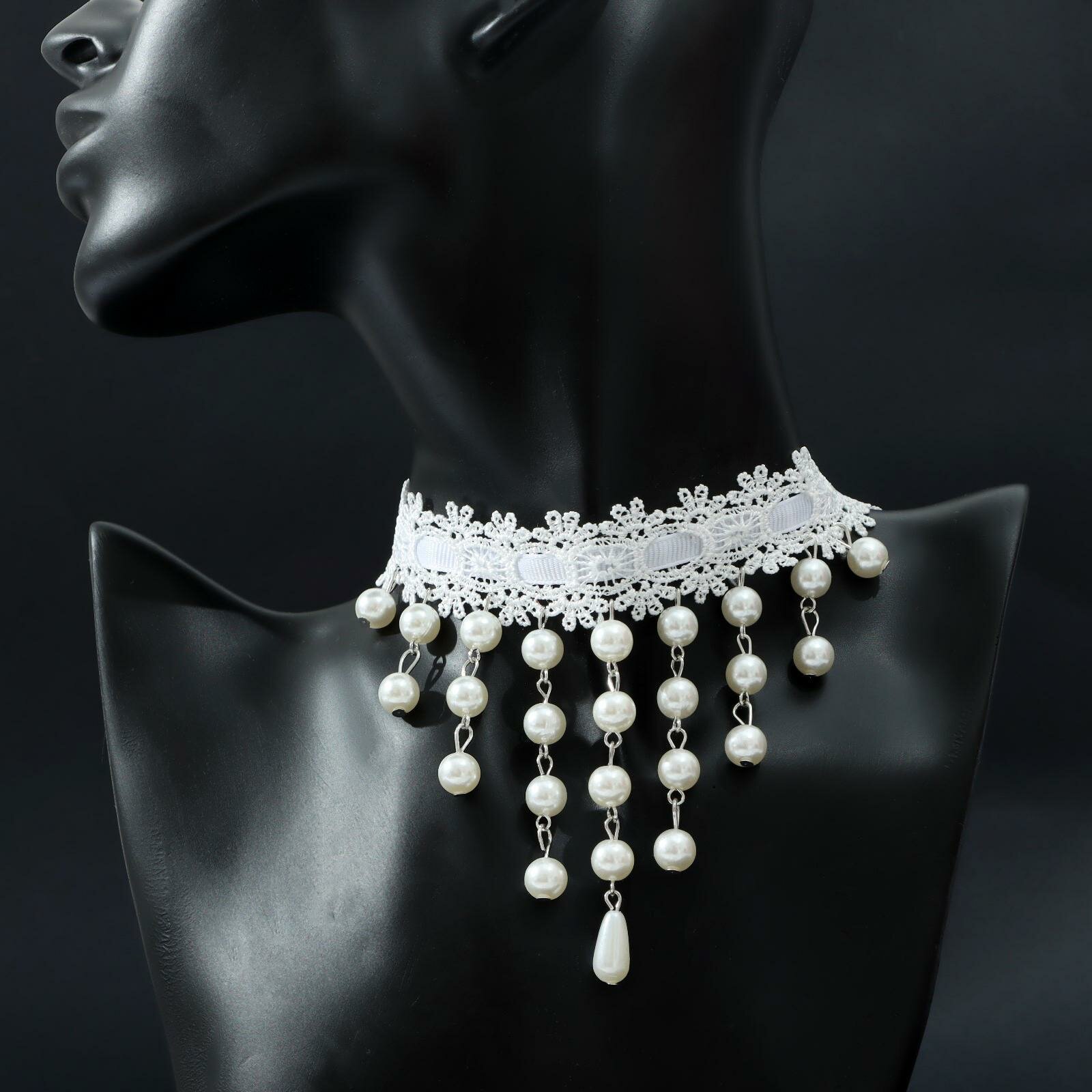 Queen fair Чокер «Александрия» кружево, бусины, цвет белый, L=30 см