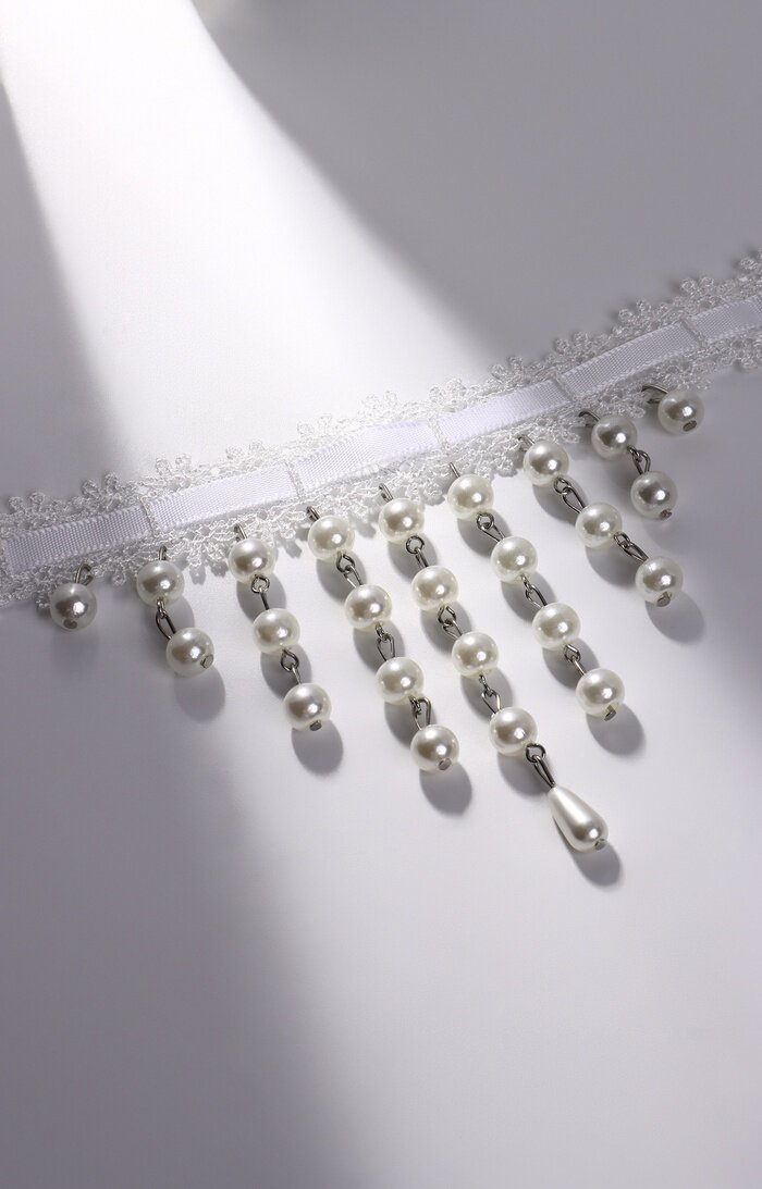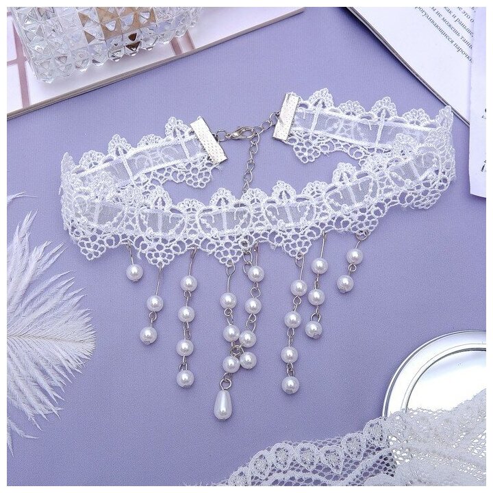 Купить Чокер "Александрия" кружево, бусины, цвет белый, L=30 см