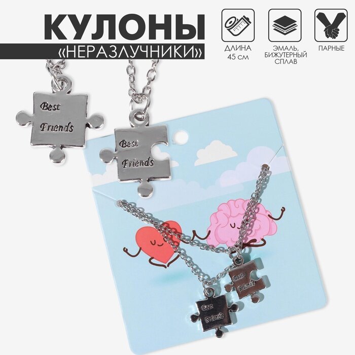 Кулоны "Неразлучники" пазлики друзей, цвет серо-чёрный, 45 см интересное: