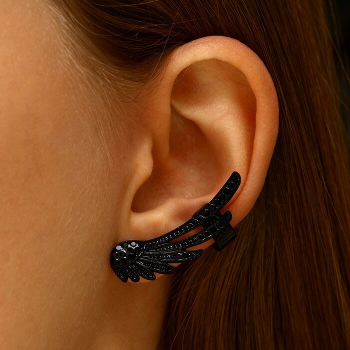 Купить Серьга Queen fair "Кафф" крылья ангела, цвет черный