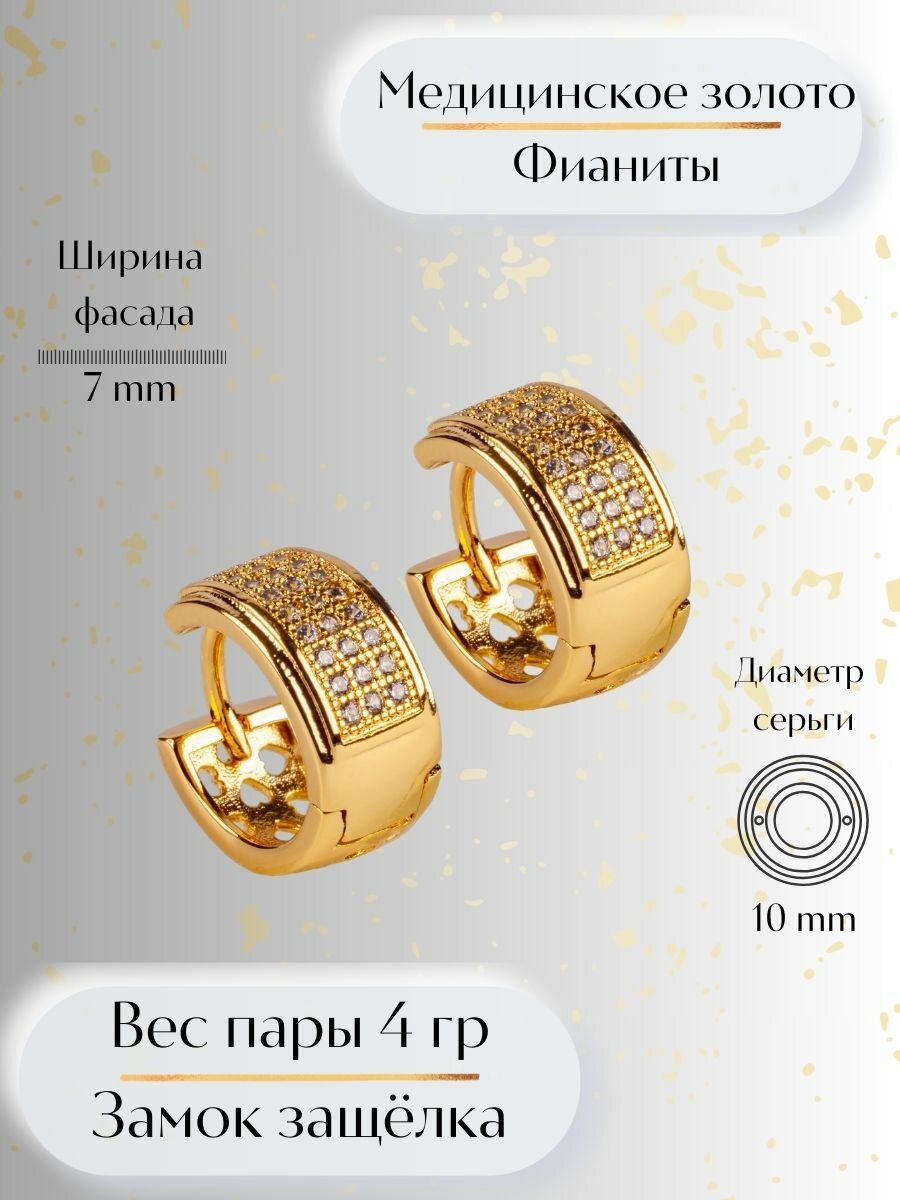 СохранитьСерьги кольца позолоченные с дорожками фианитов / бижутерия серьги x1320242-05 интересное: