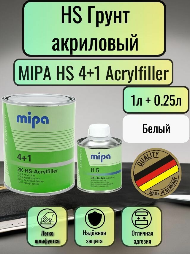 MIPA HS Грунт 4+1 Acrylfiller 1л. Белый + отв. Н5 0.25л. интересное: