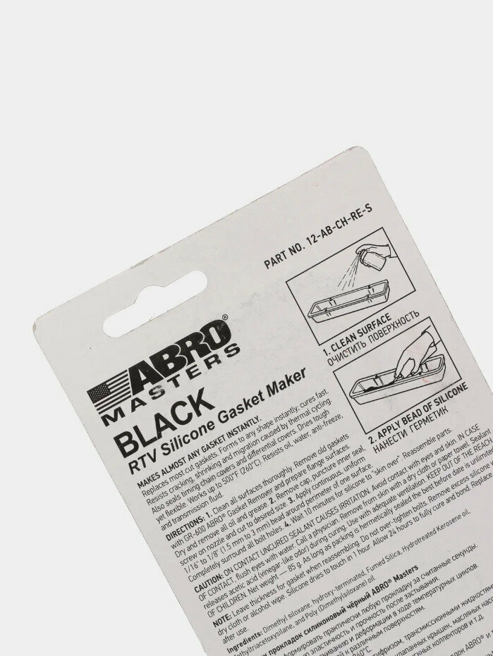 | Подробная комплектация | Герметик прокладок Abro Masters силиконовый прозрачный 85 г |