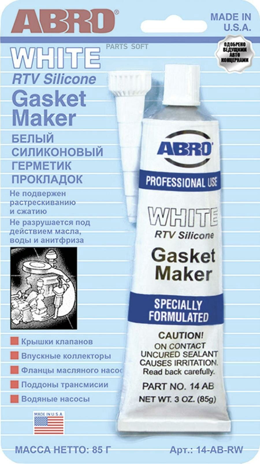 Герметик силиконовый белый 85гр США ABRO 14-AB-RW Abro 14ABRW интересное: