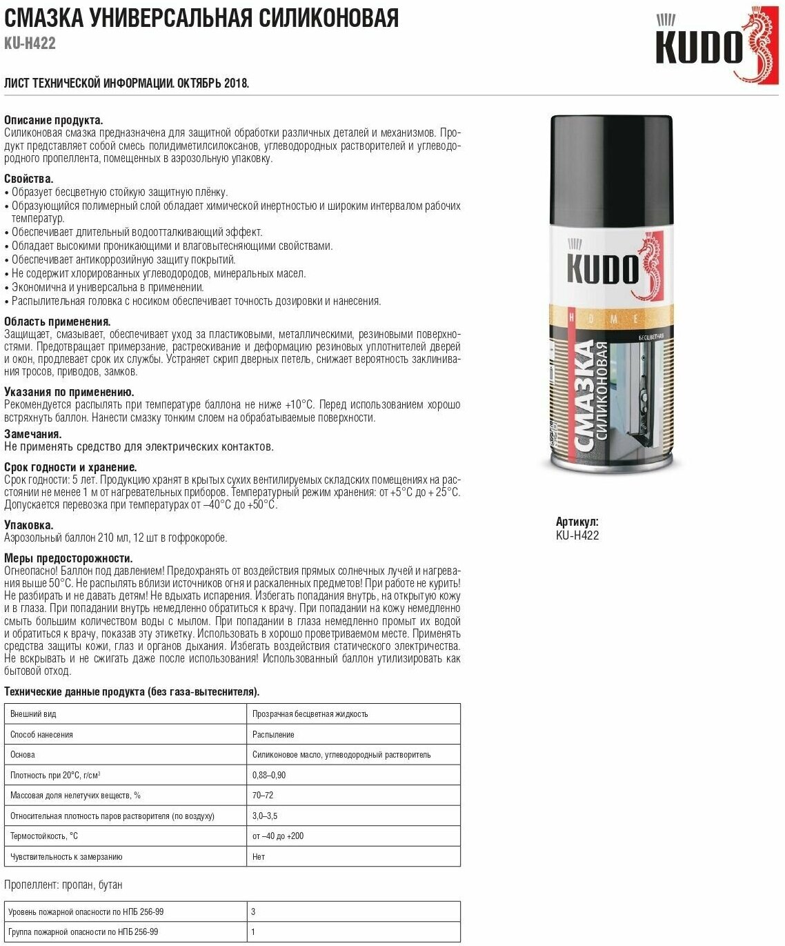 Силиконовая смазка 210 мл аэр. KU-H422 KUDO