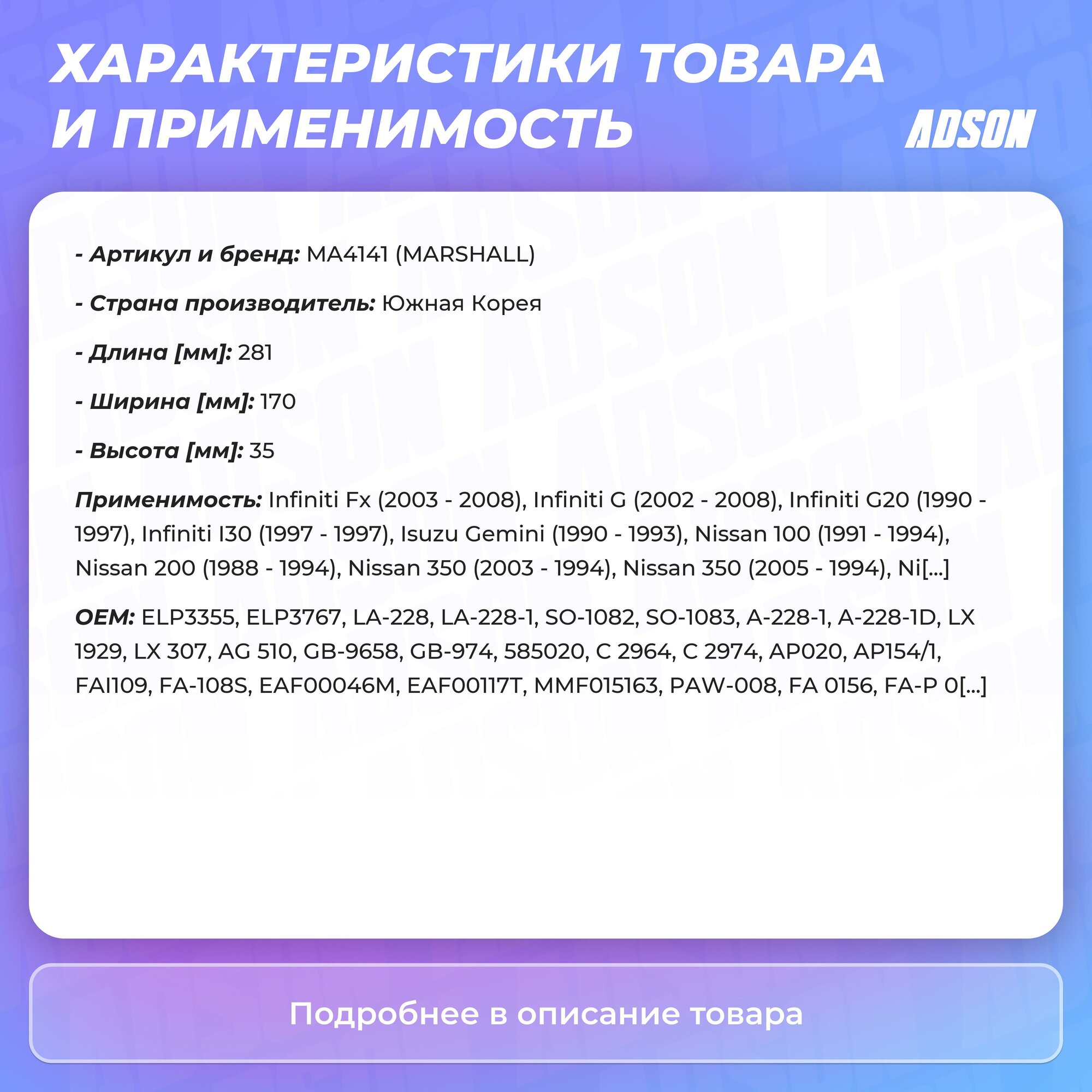 Marshall / ma4141 / Фильтр воздушный интересное: