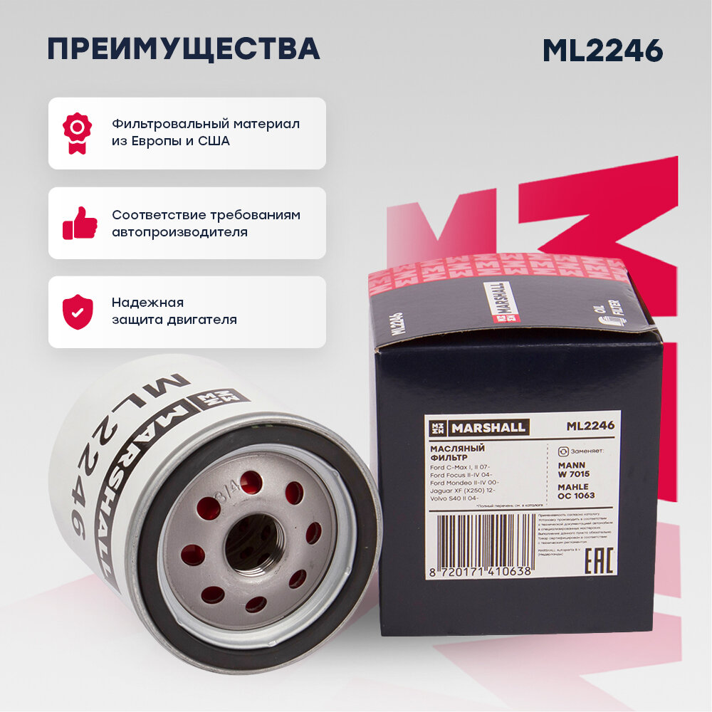 Фильтр масляный MARSHALL ML2246 Ford C-Max / Focus/ Mondeo, Jaguar XF, Volvo S40 // кросс-номер MANN W 7015