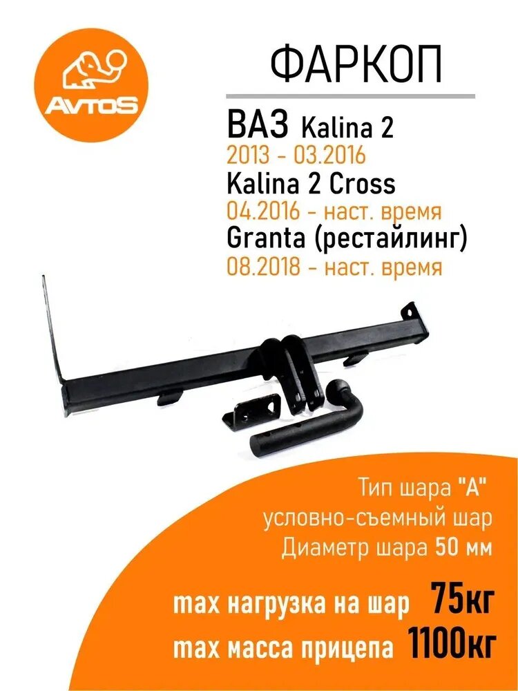 Фаркоп AvtoS VAZ-69 для ВАЗ Калина 2 (универсал, в т.ч. кросс, с 2013 г.), Гранта (седан, лифтбек, унив. с 2018 г.) (паспорт и сертификат)