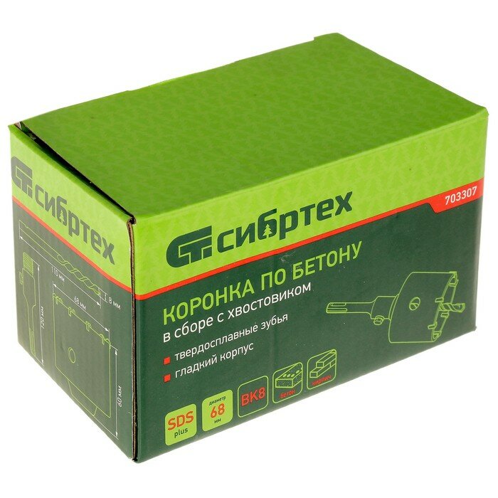 Коронка по бетону "СИБРТЕХ", SDS-Plus, 22 х 68, в сборе интересное: