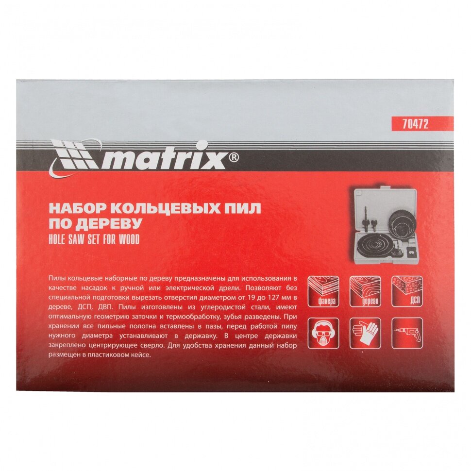 Набор кольцевых пил по дереву, 19-127 мм, 12 предметов Matrix 70472 интересное:
