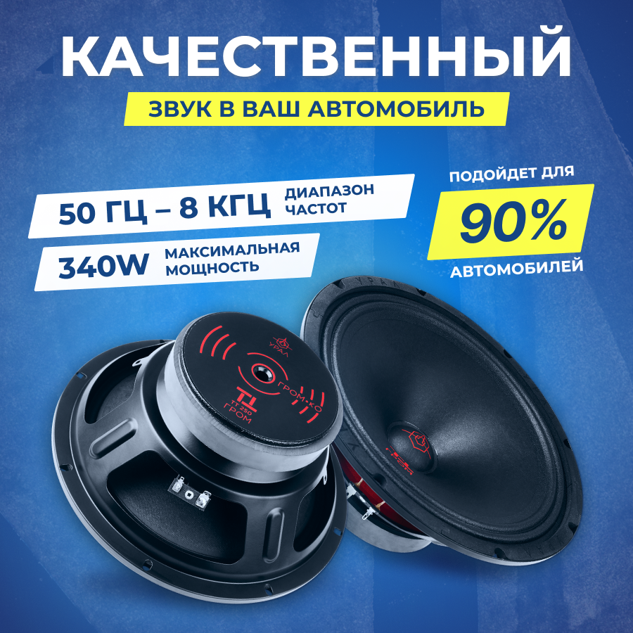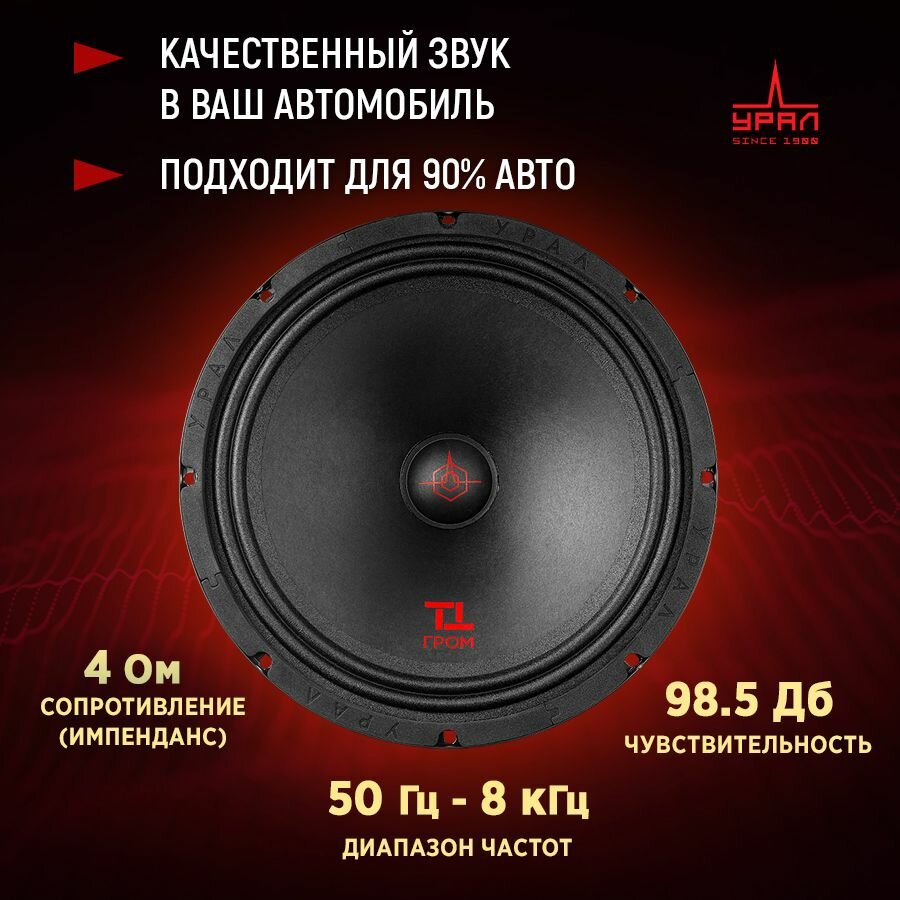 Колонки автомобильные Ural ТТ 250 гром (без решетки) 340Вт 98.5дБ 4Ом 25см (10дюйм) (ком.:2кол.) среднечастотные однополосные