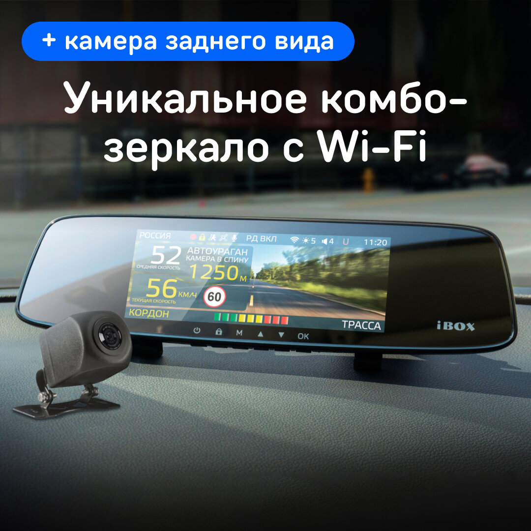 Видеорегистратор-зеркало с радар-детектором iBOX Range LaserVision WiFi Signature Dual + Внутрисалонная камера iBOX RearCam FHD4