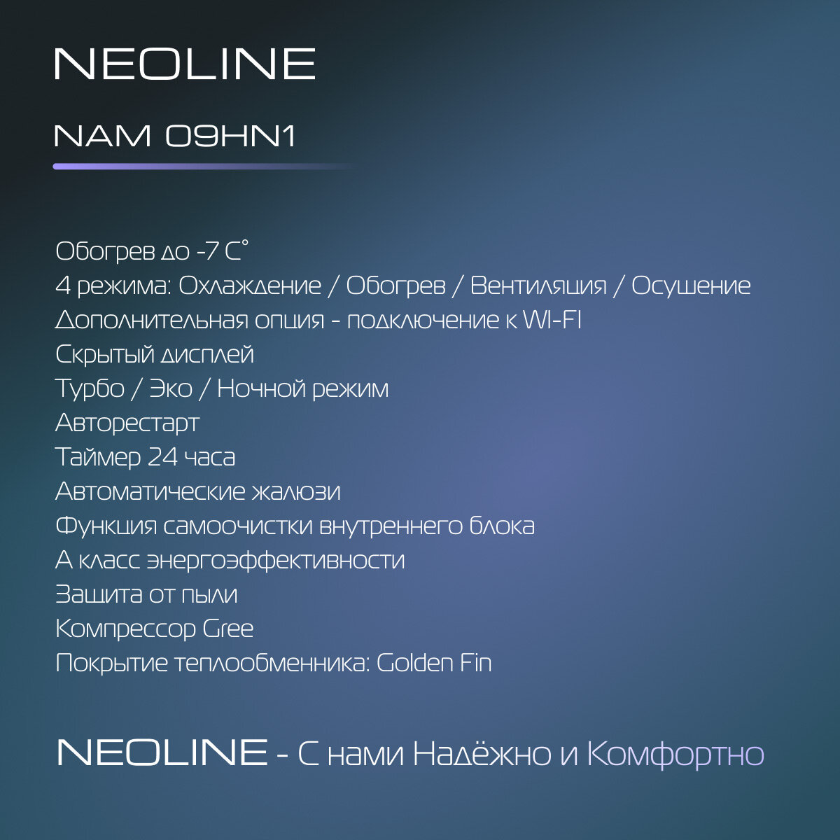 Сплит система NEOLINE AIRFRESH NAM 09HN1 комплект интересное: