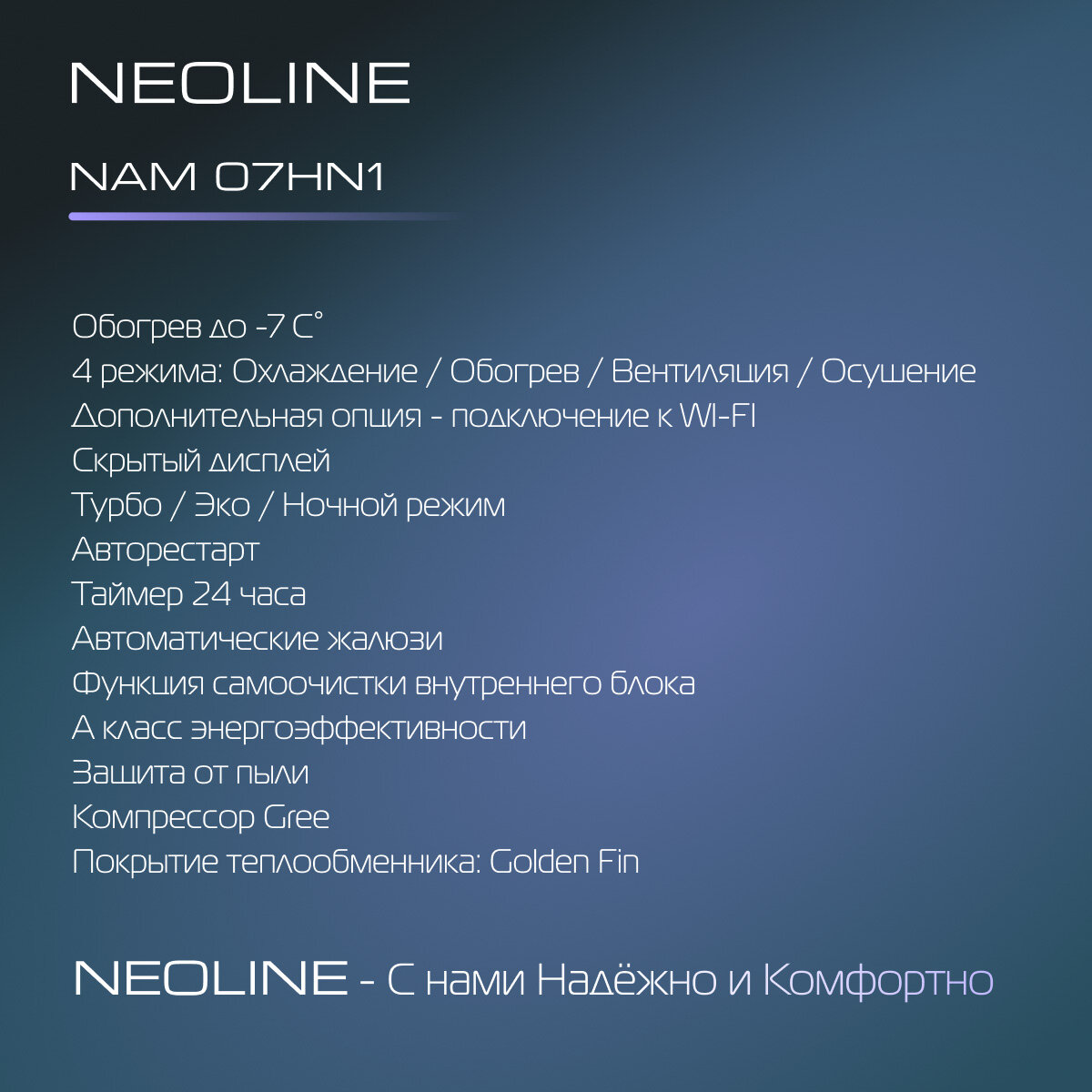 Сплит система NEOLINE AIRFRESH NAM 07HN1 комплект интересное: