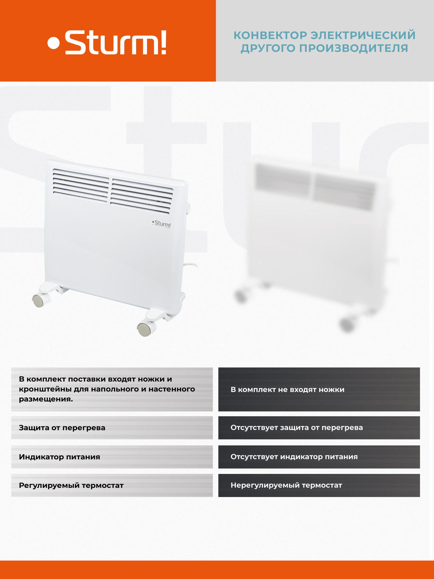 Конвектор Sturm! CH1001RF, белый, алюминий, 1кВт, площадь 15м² интересное: