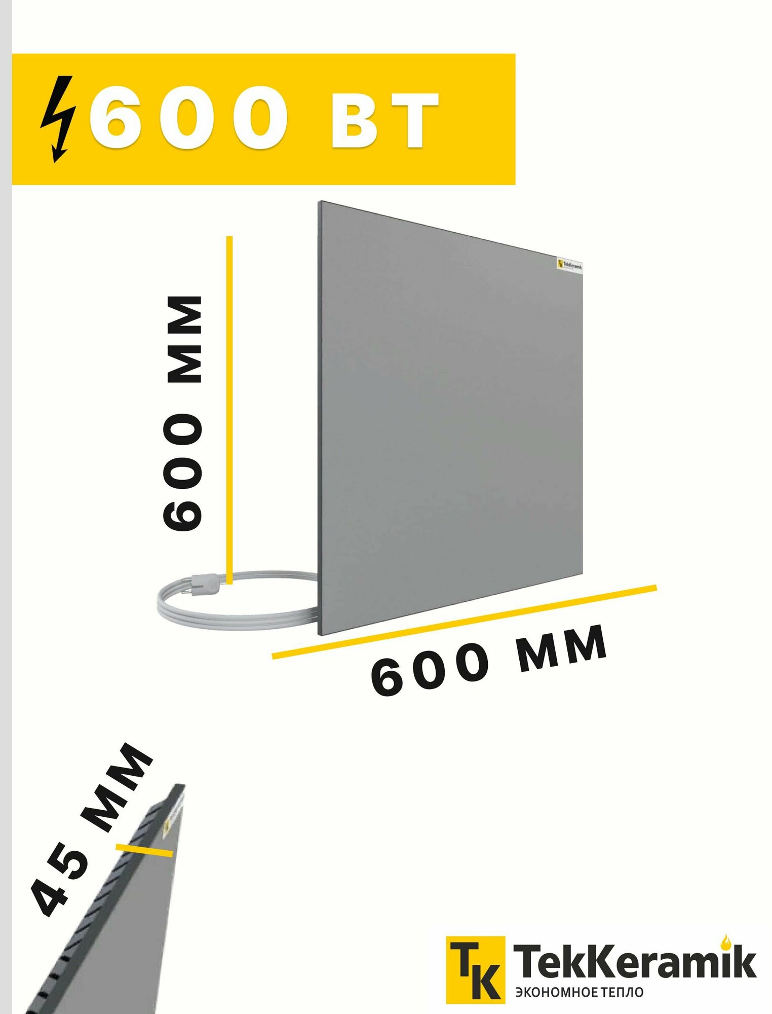 Керамический обогреватель TekKeramik (Теккерамик) ТК-600W светло-серый интересное: