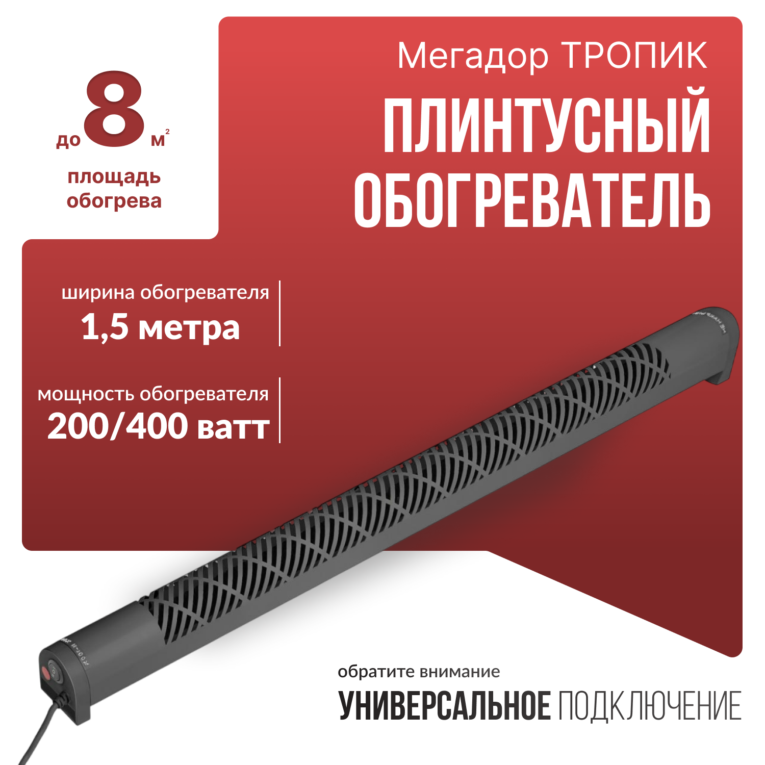 Обогреватель плинтусный универсальный Мегадор MF150NU Черный, универсальное подключение