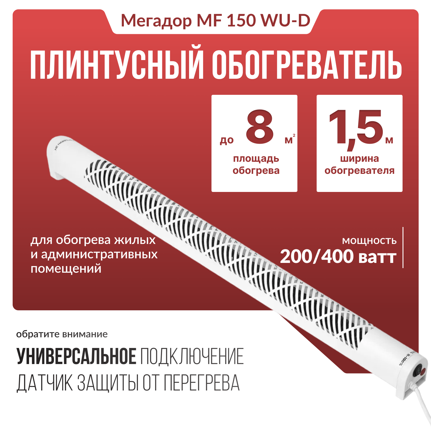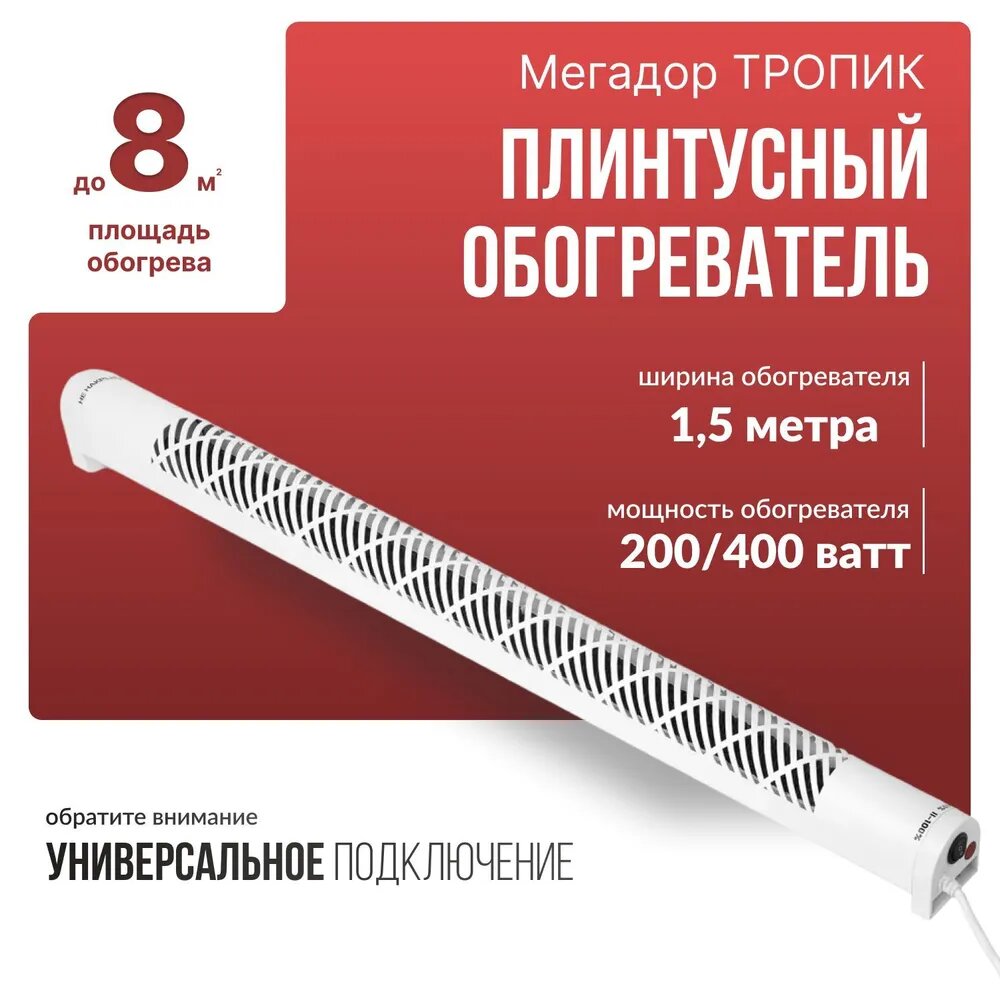 Обогреватель плинтусный универсальный Мегадор MF150WU Белый, универсальное подключение