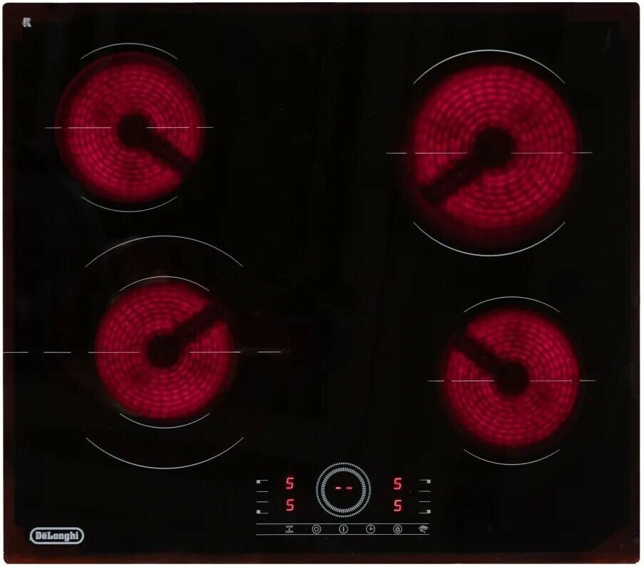Керамическая варочная панель DeLonghi VITTORIO 1E1F CR, 60 см, черная, Функция Melting, сенсорное управление, система обнаружения неисправностей