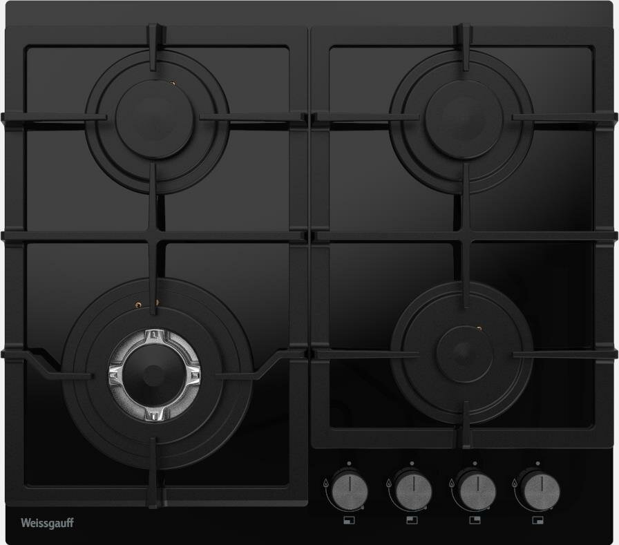 Варочная панель Weissgauff HGG 641 BGV WOK-конфорка, 3 года гарантии, автоматический электроподжиг, Рукоятки Hi-Tech, газ-контроль