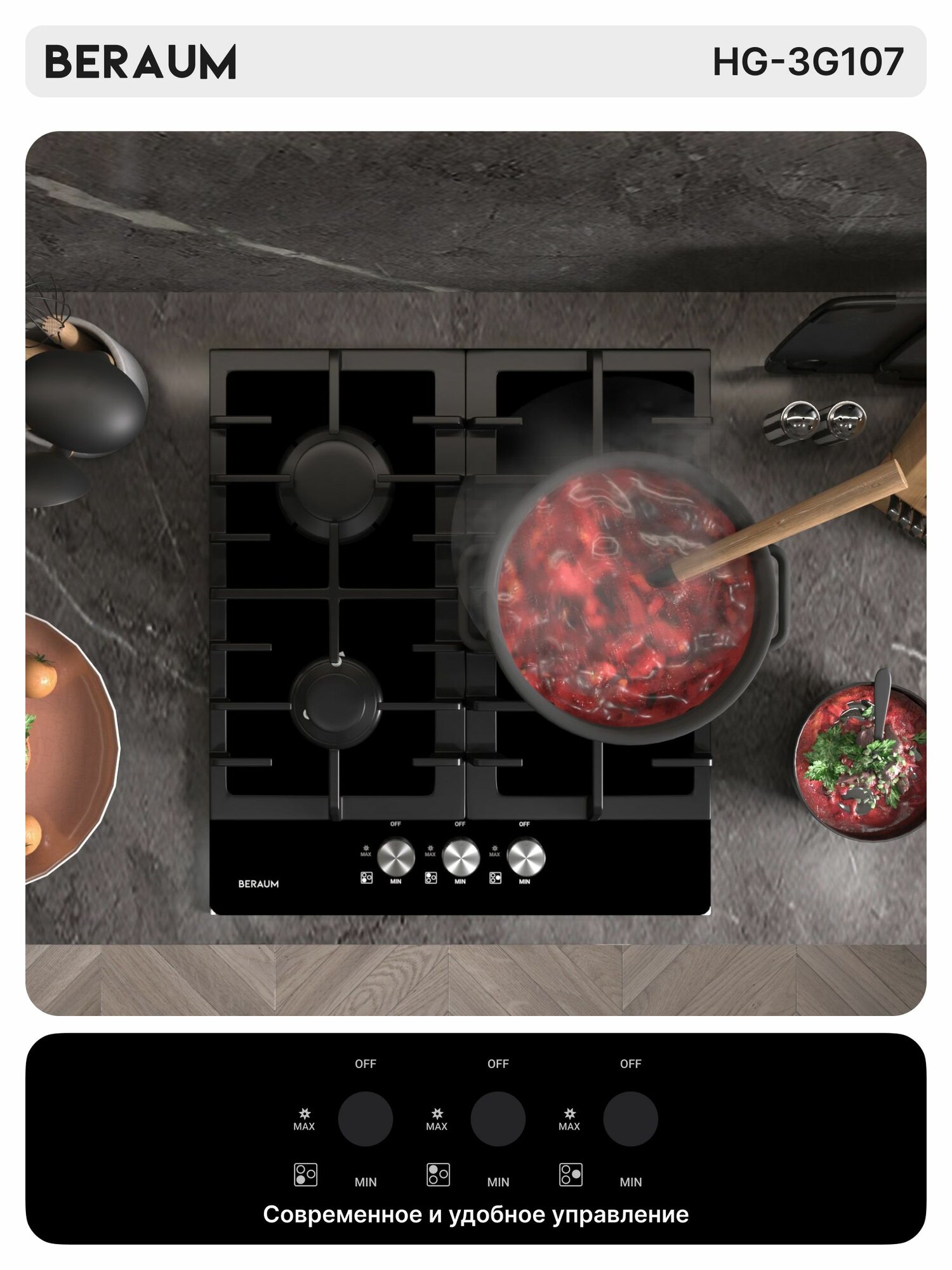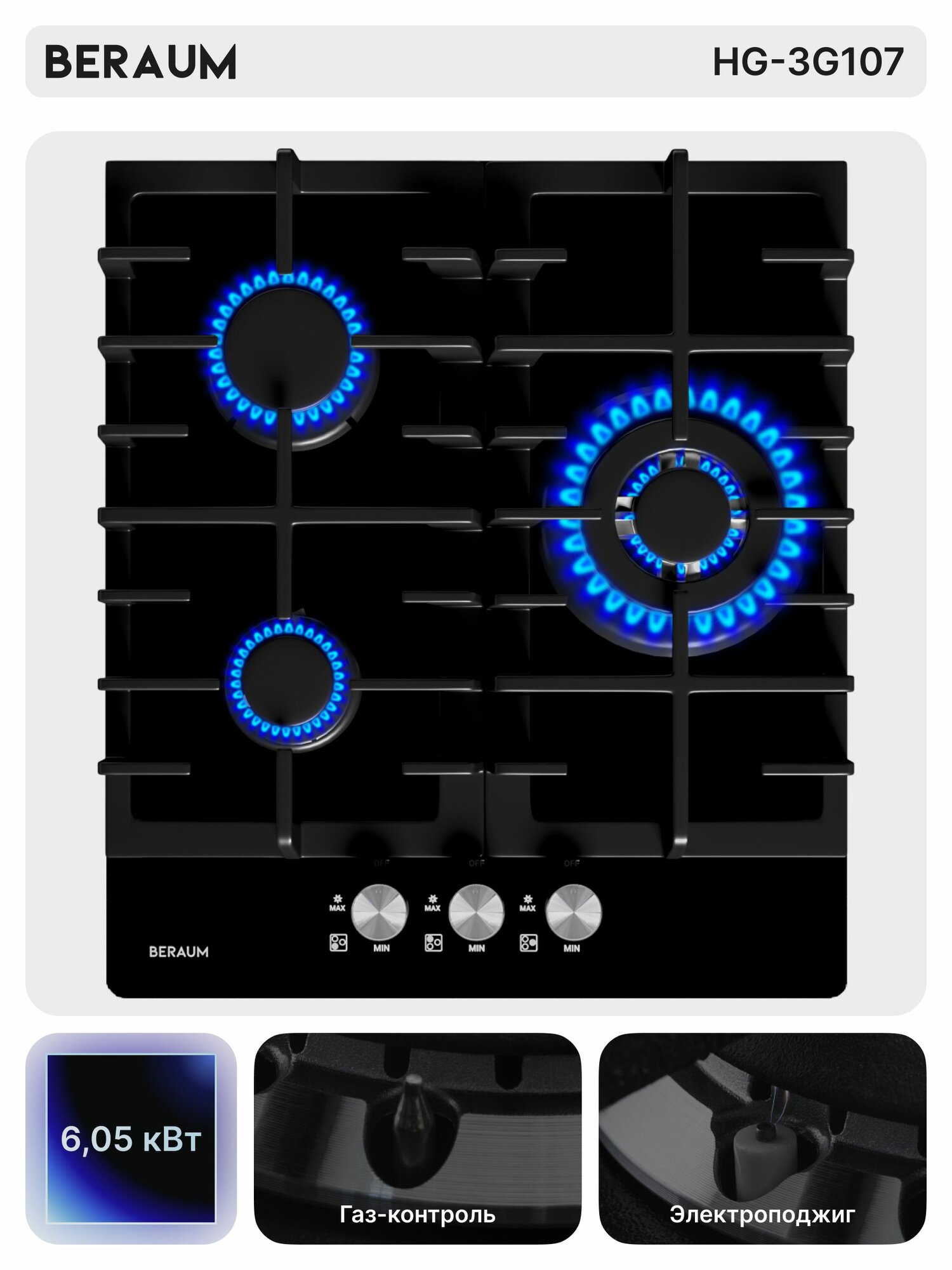 Газовая варочная панель Beraum HG-3G107 с газ-контролем