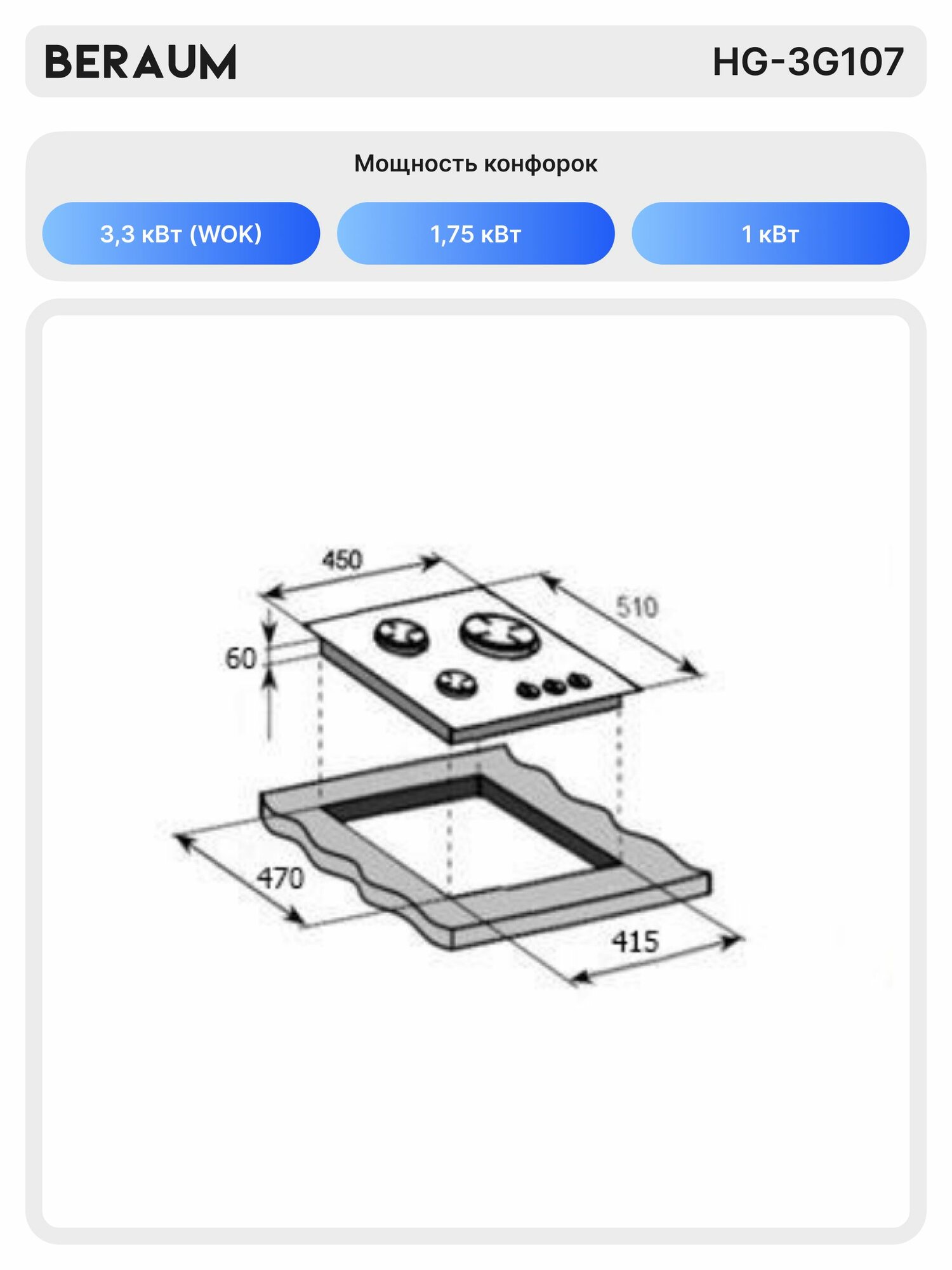 Газовая варочная панель Beraum HG-3G107 интересное: