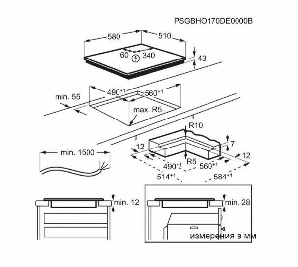 | Безопасность | защитное отключение конфорок / индикатор остаточного тепла / кнопка блокировки панели |