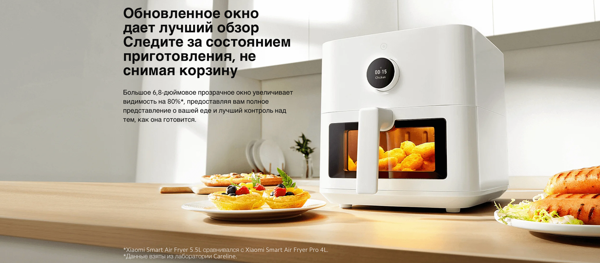 Аэрогриль 5,5 литра с окном Xiaomi Mi Smart Air Fryer MAF15 (BHR8238EU) EU-Русская версия, Цвет: Белый