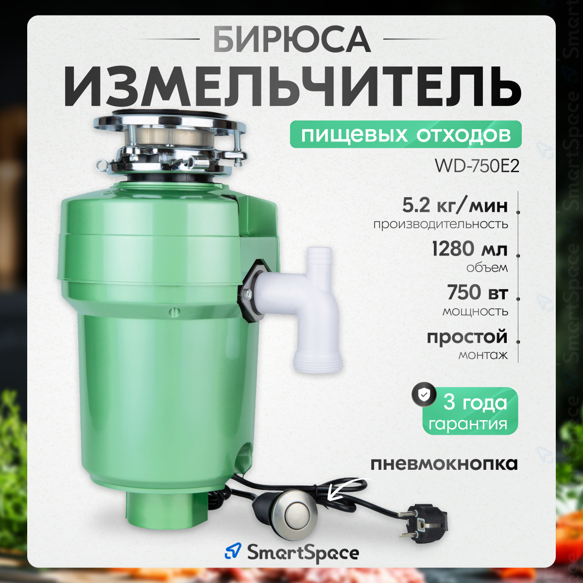 Измельчитель пищевых отходов Бирюса WD-750Е2 интересное: