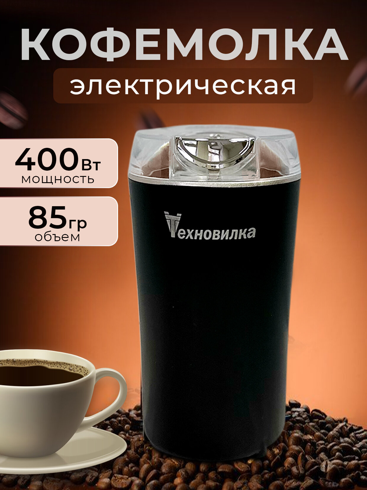Кофемолка электрическая Техновилка 400 Вт черная интересное:
