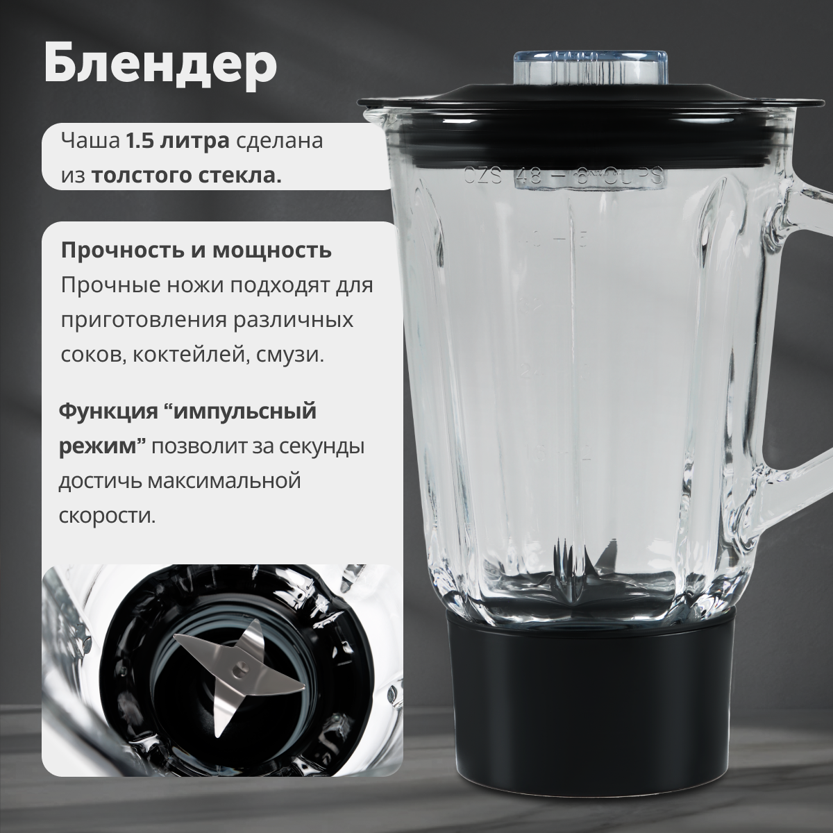 Кухонный комбайн 13 в 1, 1.2 литра, 1000 Вт, черный с серебристым