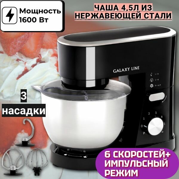 Планетарный миксер GALAXY LINE GL2236, миксер кухонный, 3 насадки