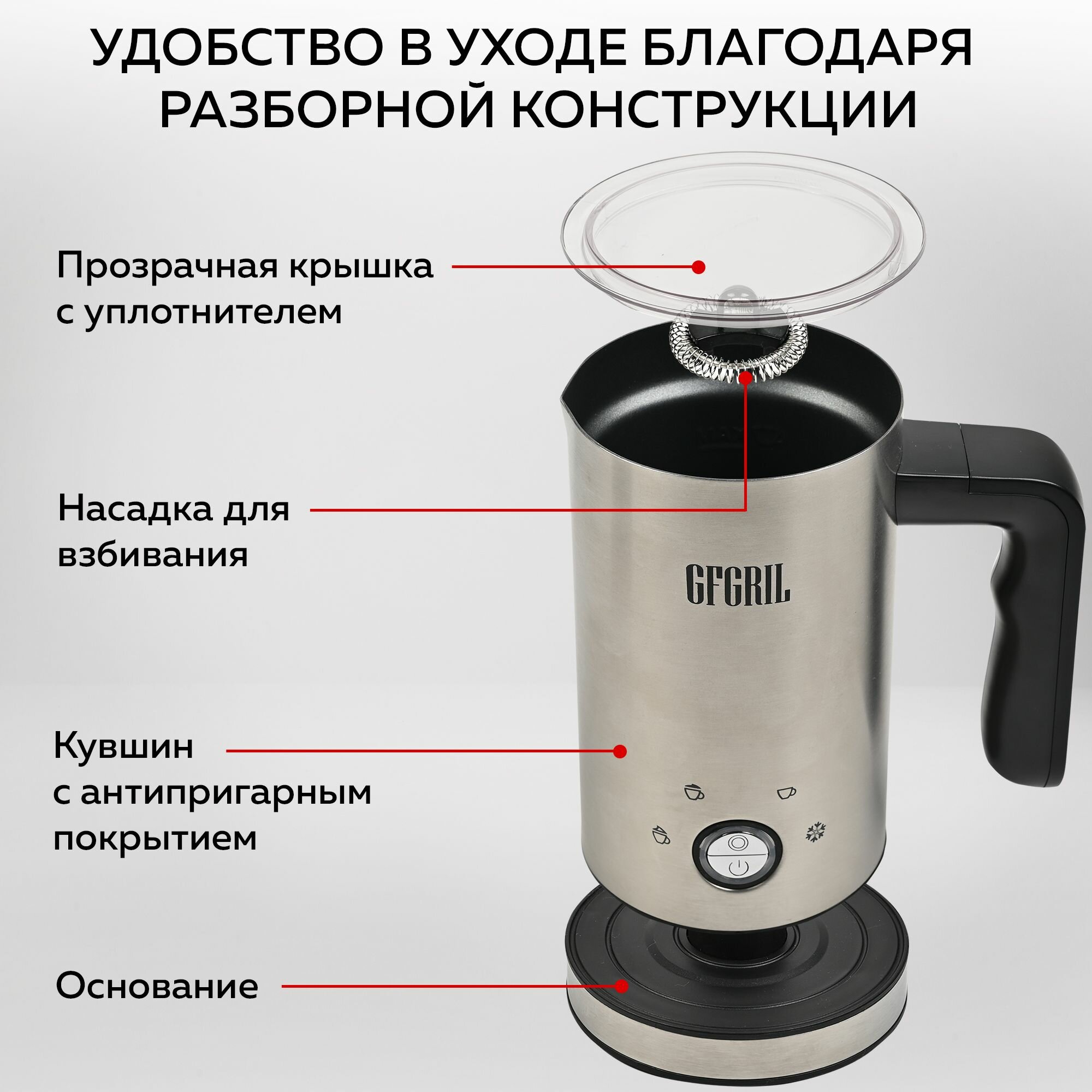 Капучинатор для молока электрический GFGRIL GF-CAP15, вспениватель молока, нержавейка интересное: