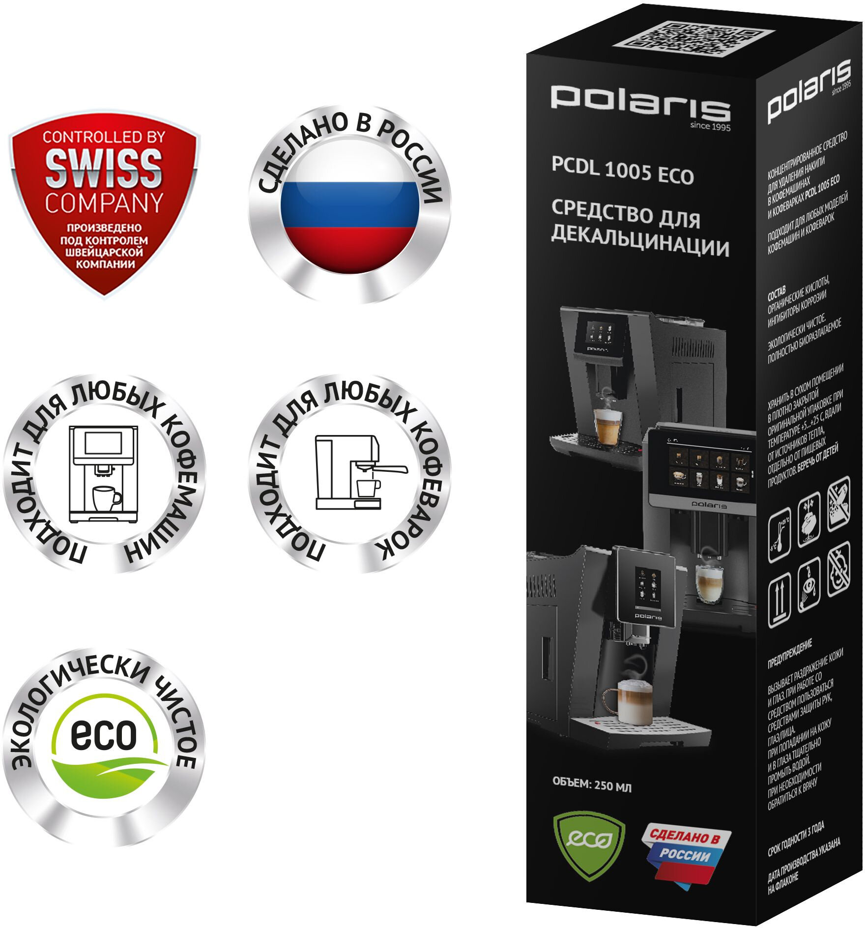 Очиститель от накипи Polaris PCDL 1005 ECO, для кофеварок и кофемашин, 1 шт, 250мл, белый [020517]