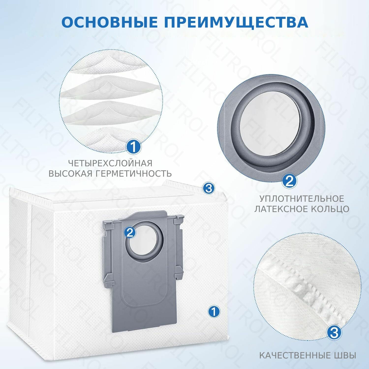 Мешок пылесборник (10 шт.) для робота-пылесоса Roborock S7 MaxV Ultra, Q5 Pro Plus, Q7, Q7+, Q7 Max, Q7 Max+, S8+ интересное: