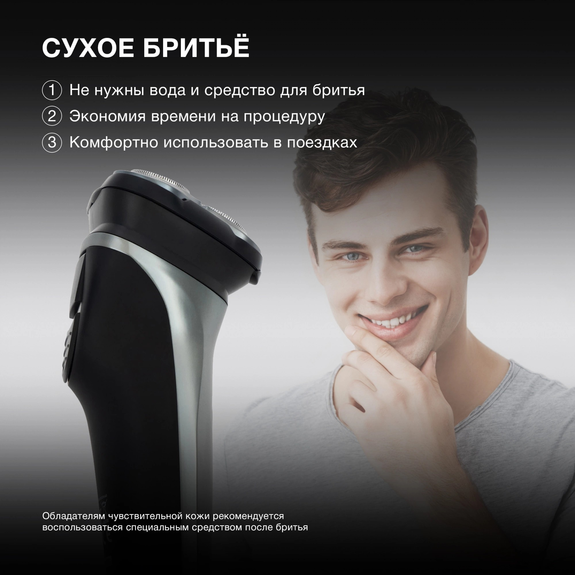 Бритва роторная Hyundai H-SH8099 сухое/влажное бритье, аккумулятор, встроенный триммер, серый. интересное: