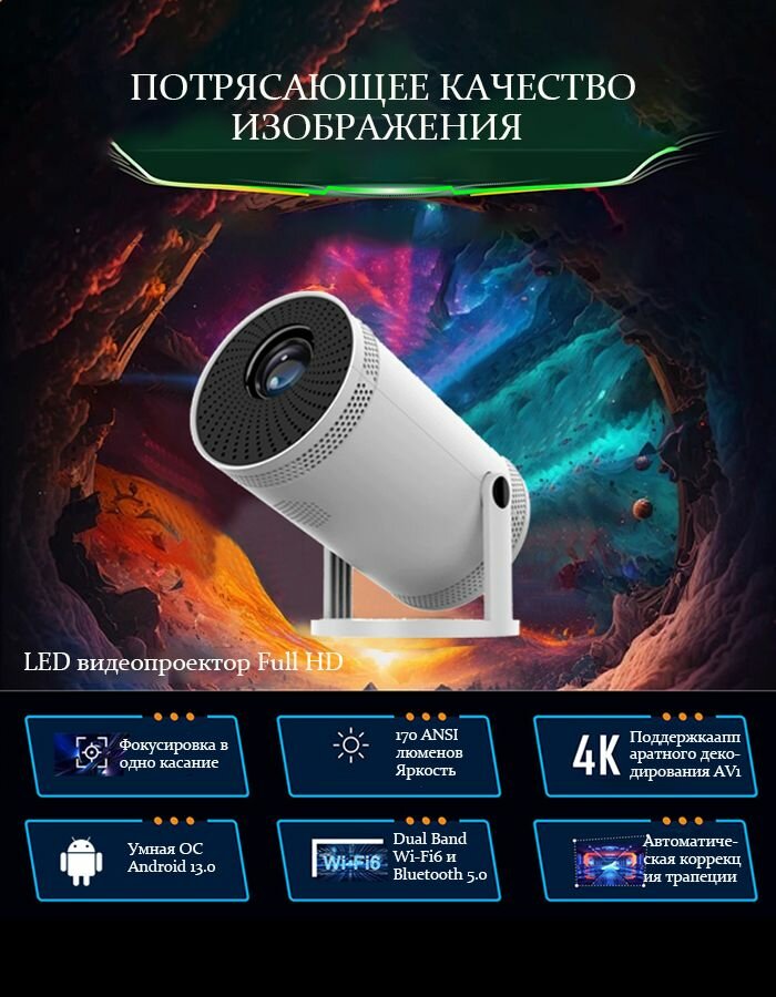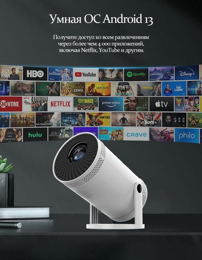 Мультимедийный лазерный мини проектор для фильмов на системе Андройд / Android, Wi-Fi 5G (Для кино, портативный), потоковый, интерактивный интересное: