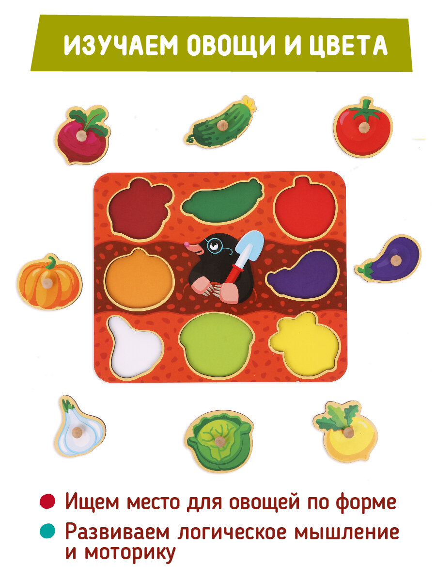 Вкладыши Крот и огород, сортер 8 деталей, учим овощи Mapacha 962048