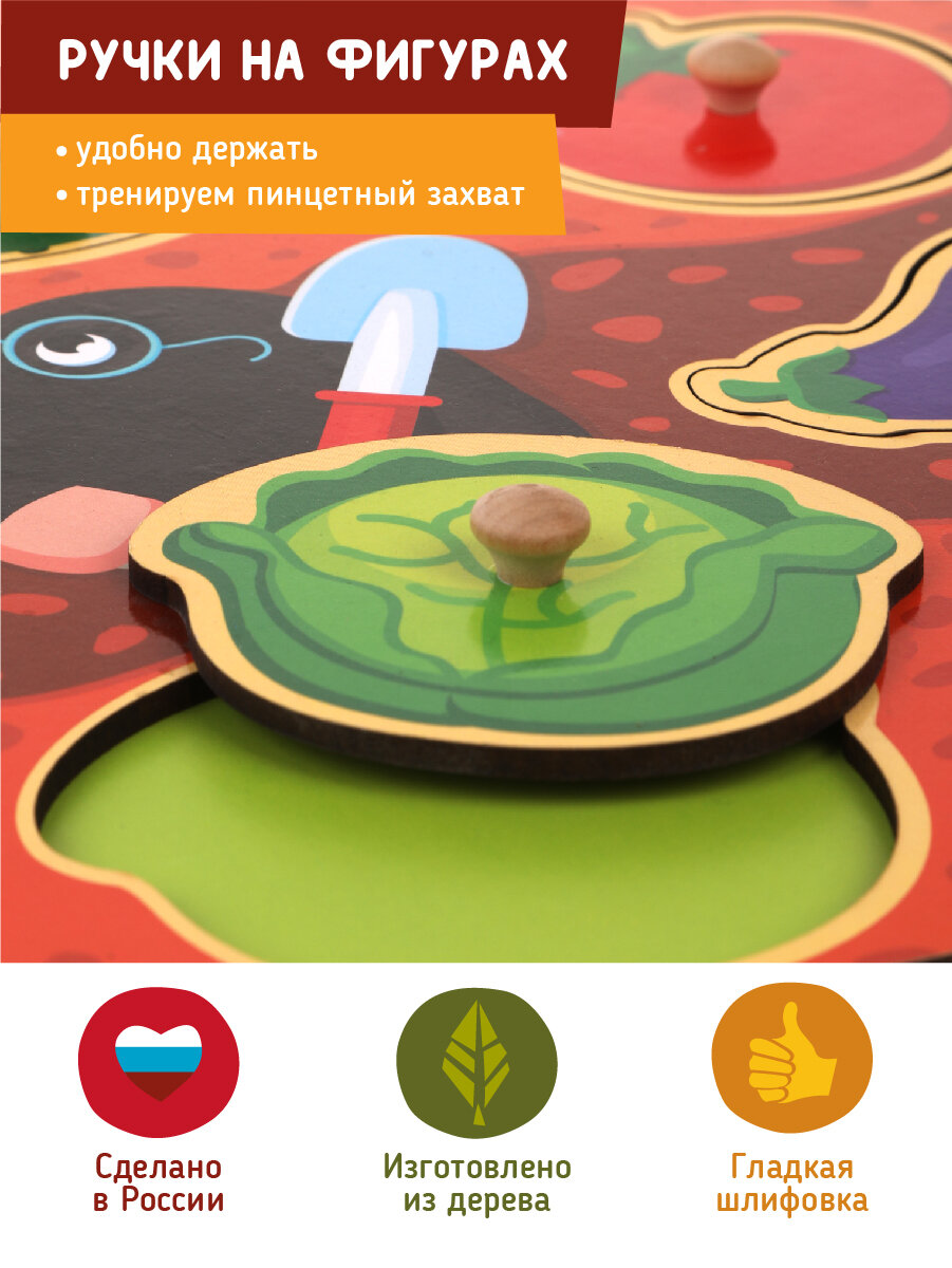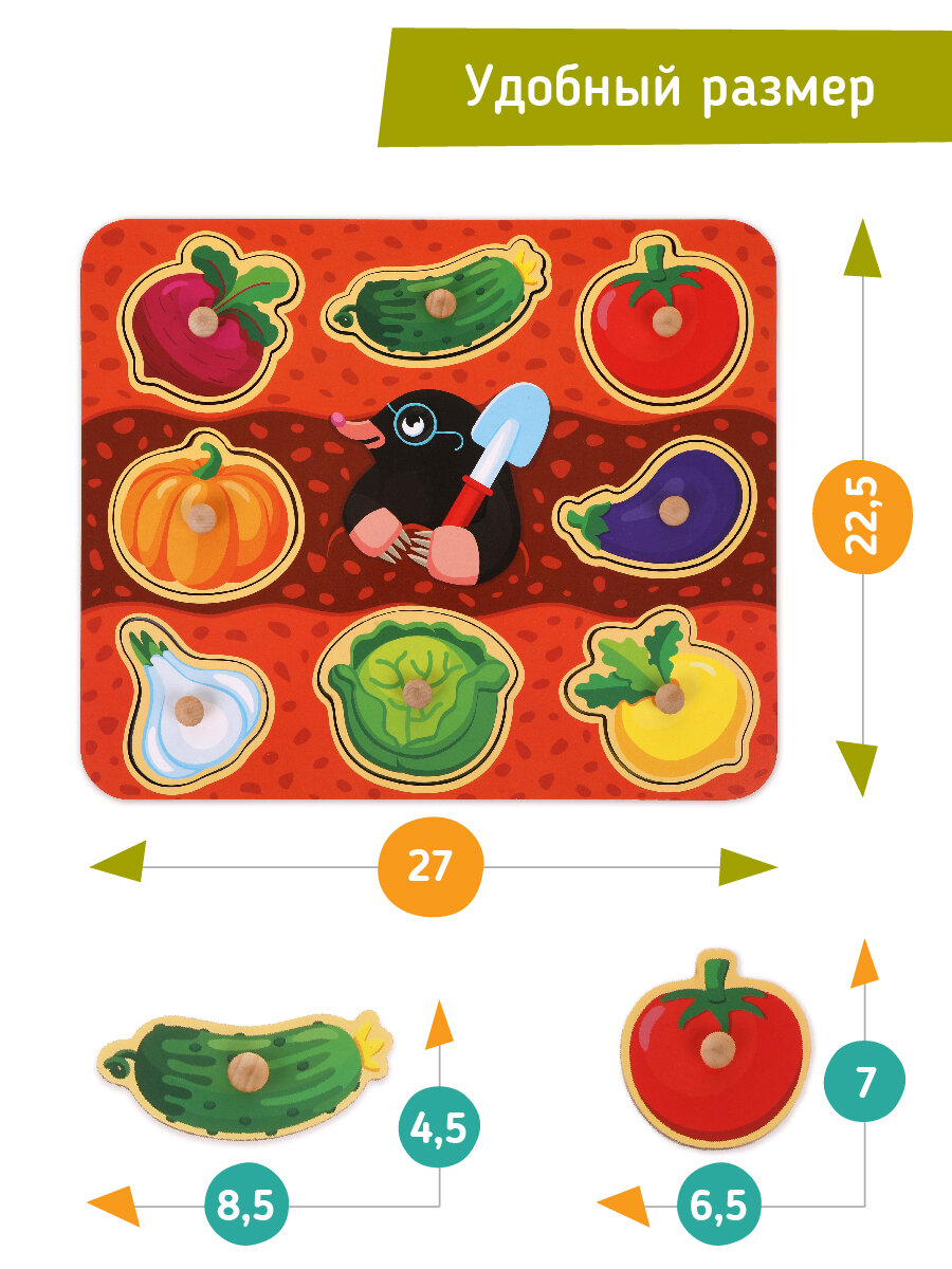 Купить Сортер Mapacha "Овощи" деревянный, для малышей, вкладыши, 9 деталей