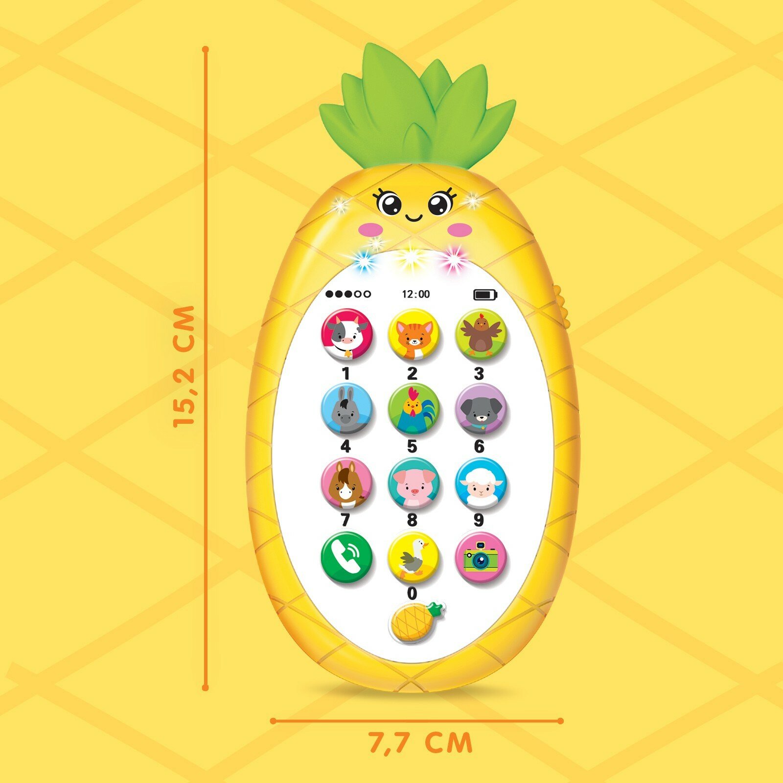 Музыкальный телефон Ананасик, свет, звук