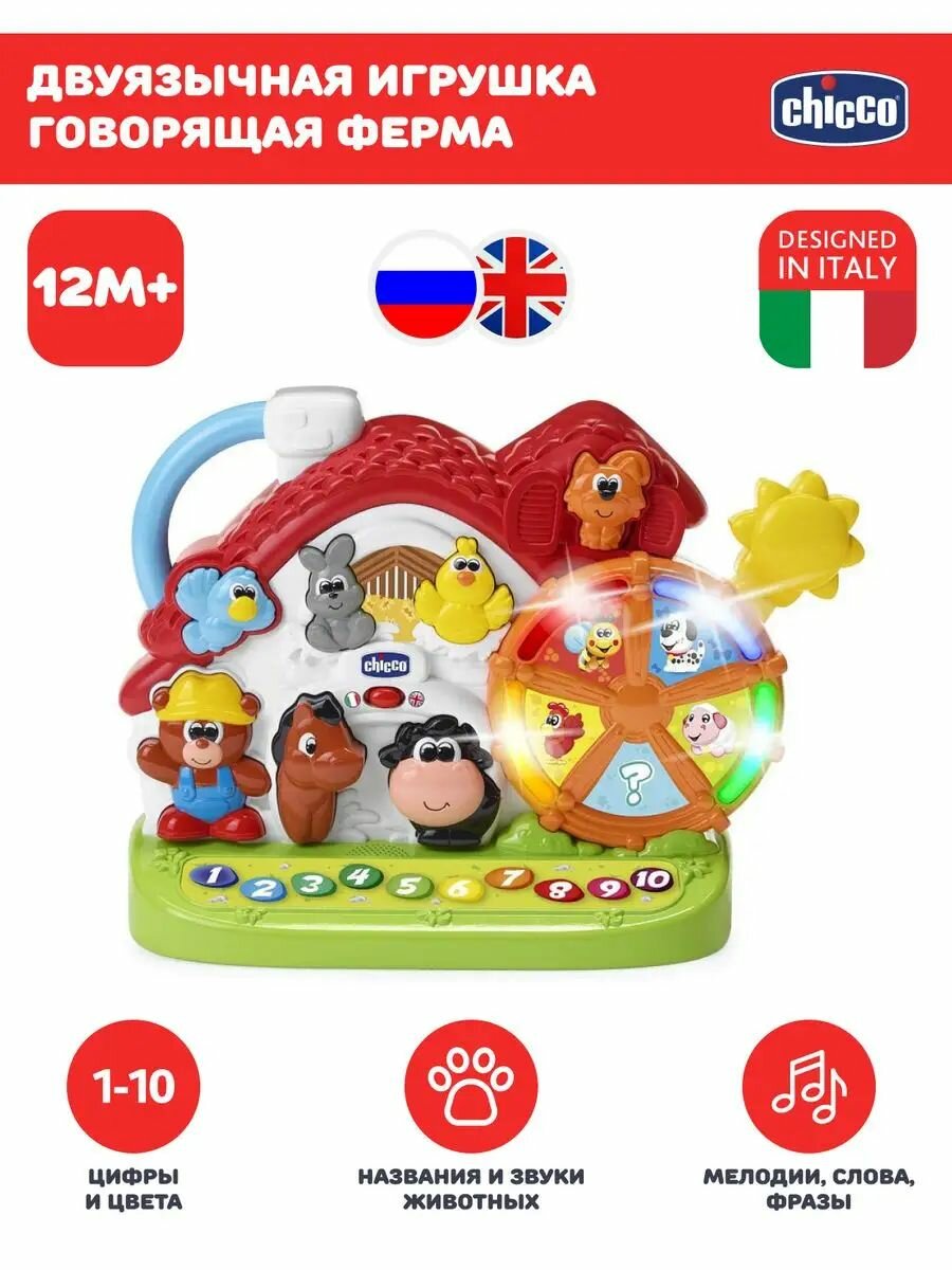 Игрушка развивающая двуязычная Chicco Говорящая ферма new для малышей от 1 года до 4 лет на английском и русском языках