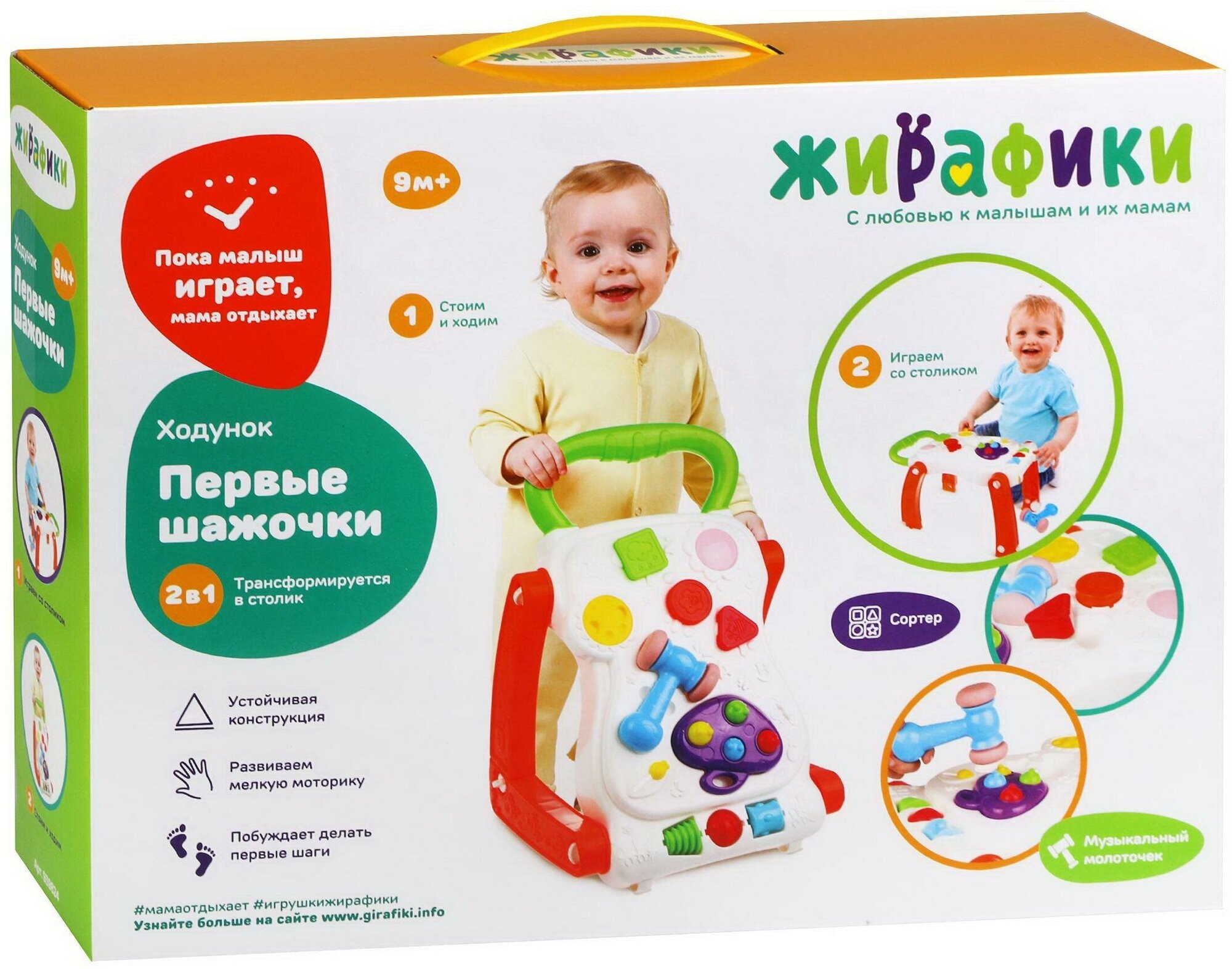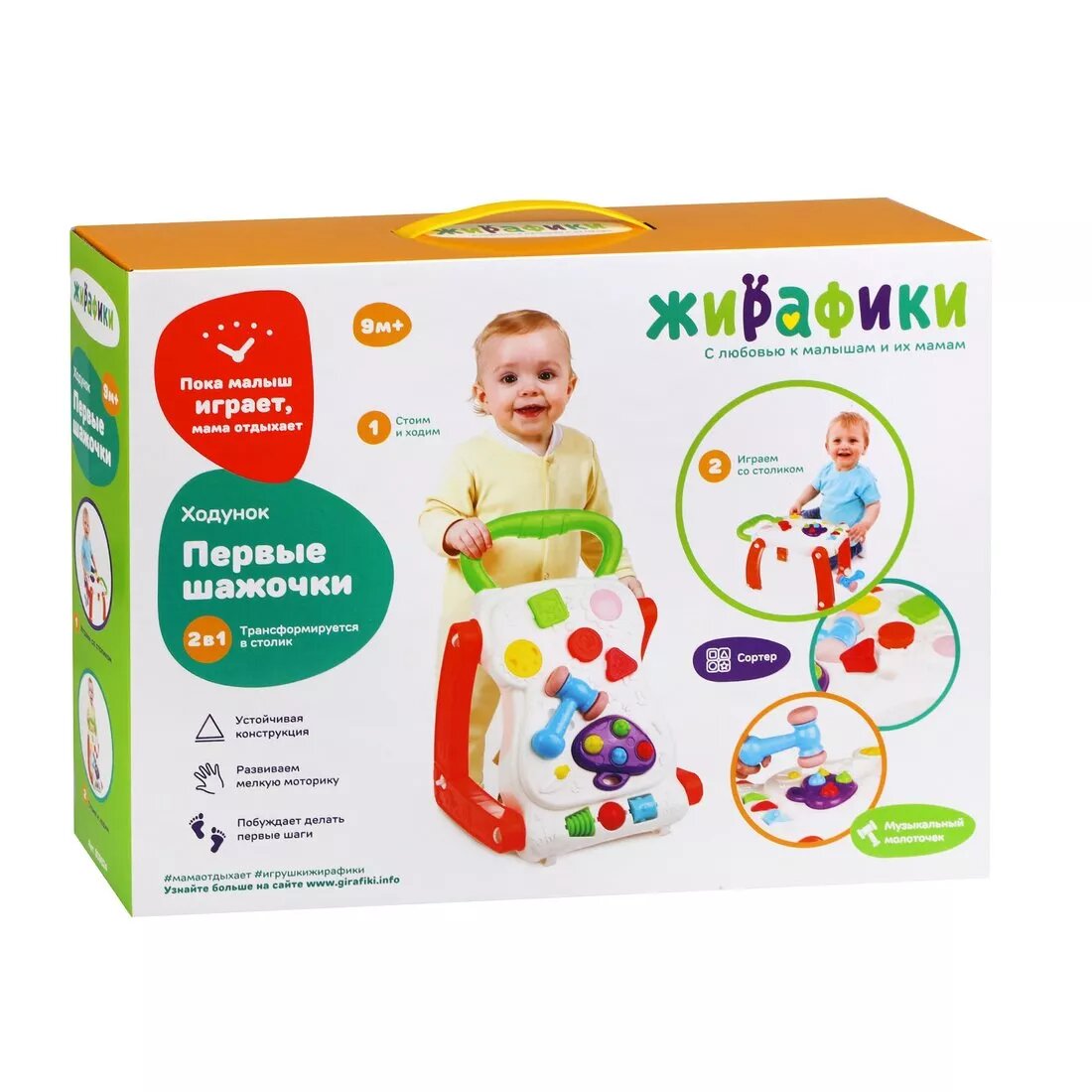 Каталка-ходунок Первые шажочки Жирафики 939824 интересное: