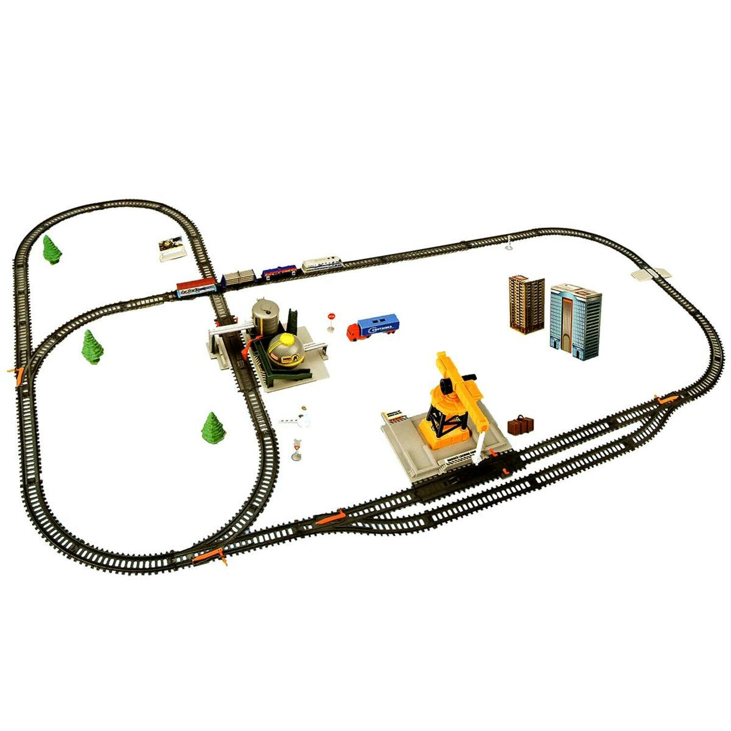 | Комплектация | 1 локомотив / 3 грузовых вагона / рельсы / станция загрузки воды и контейнеров / элементы декора |