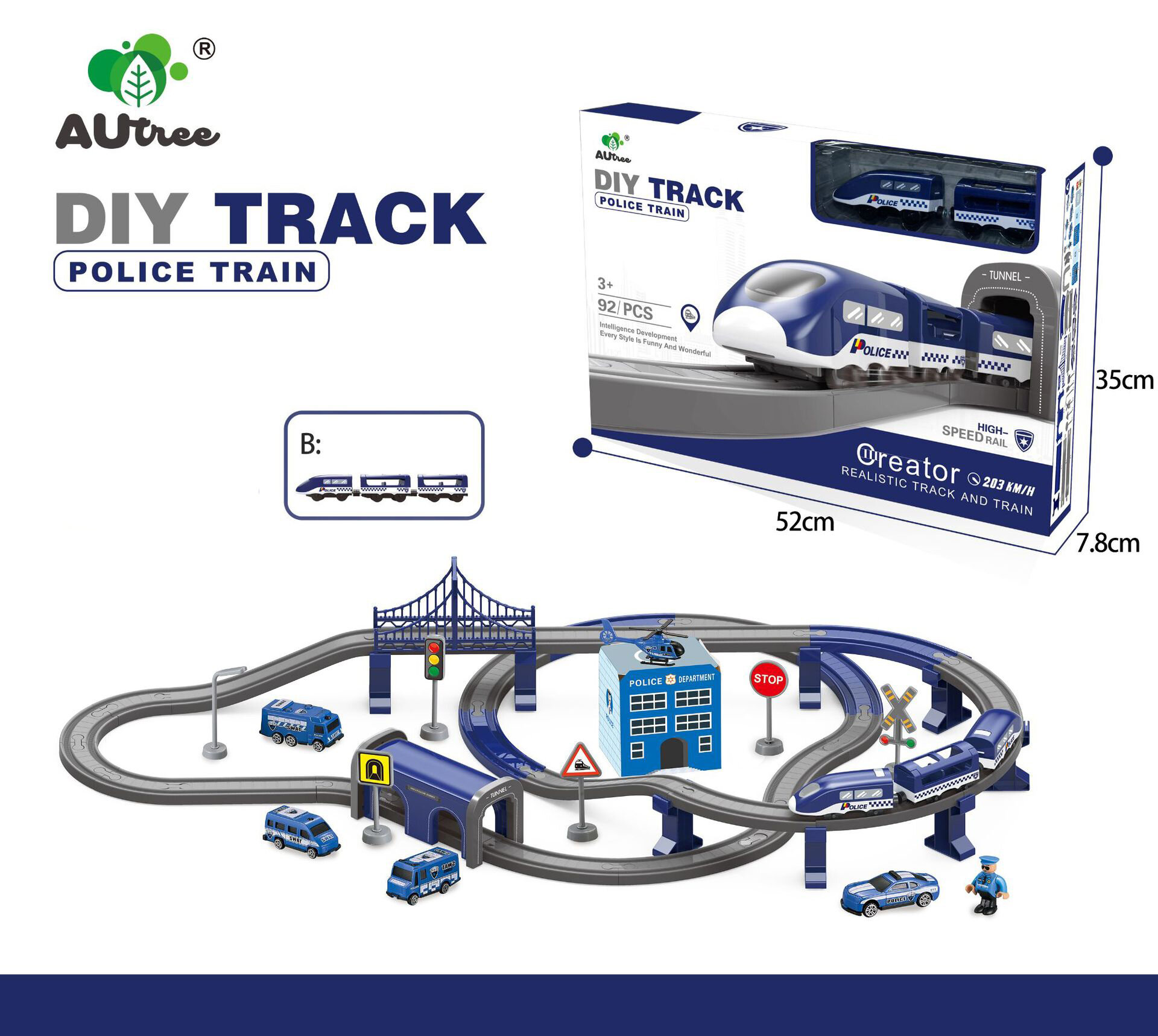Купить Двухуровневая железная дорога c электропоездом, машинками и аксессуарами Police Train Полиция, 92 детали Синий