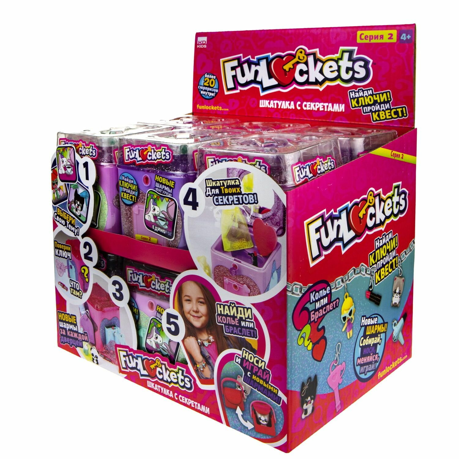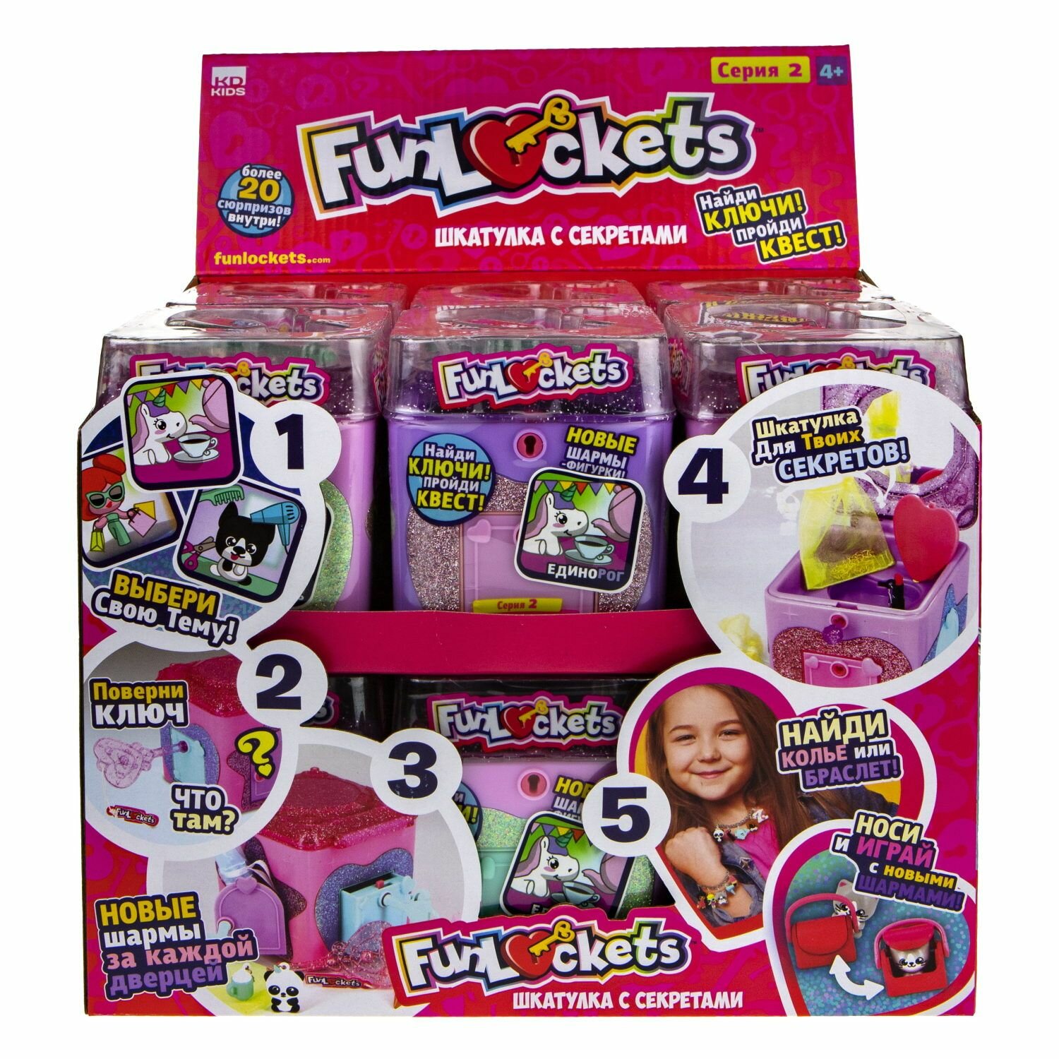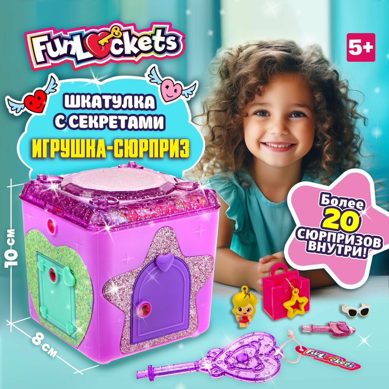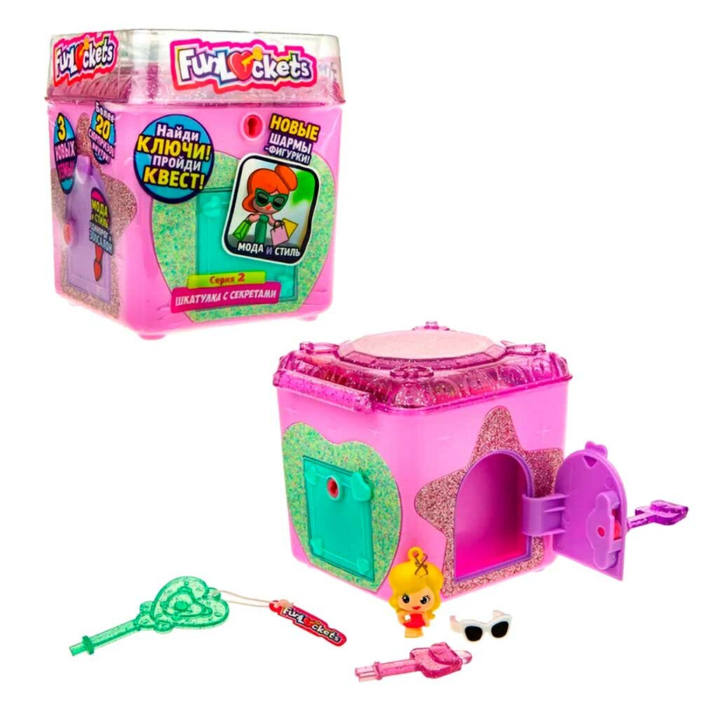 Игровой набор 1TOY Шкатулка с секретами Funlockets, набор с замком и ключами в ассортименте (8х10х9 см). 20+ сюрпризов. Фанлокетс. интересное: