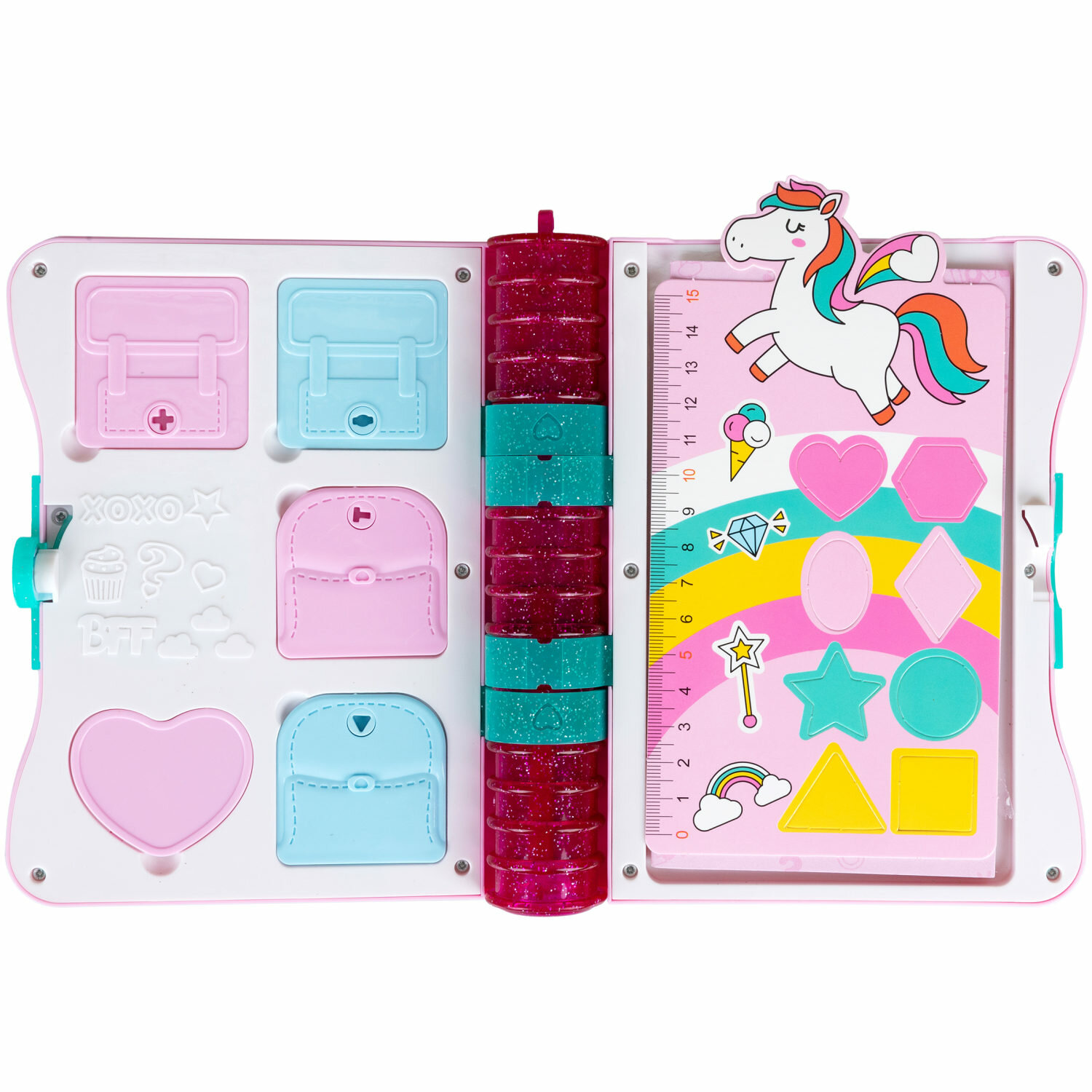 | Комплектация | дневник на замке и с отсеком в форме сердца, блокнот, карандаш с блестками, 4 ключа, брелок с шармом «Единорог», 17 листов с наклейками (более 80 шт.) для декорирования, блок для заметок, книжная закладка, лист трафаретов, 2 клейкие ленты для декорирования, ластик BFF, 3 зажима для бумаги, 2 секретных послания |