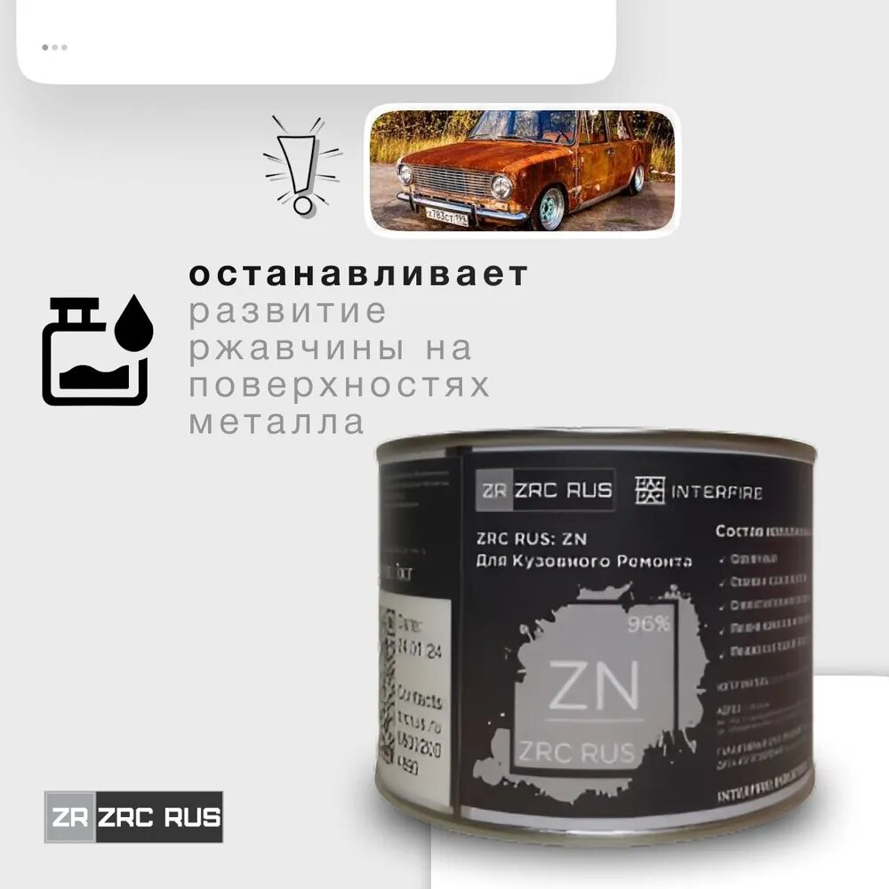 Цинконаполненный грунт ZRC RUS ZN (1кг) защита от коррозии для кузова интересное: